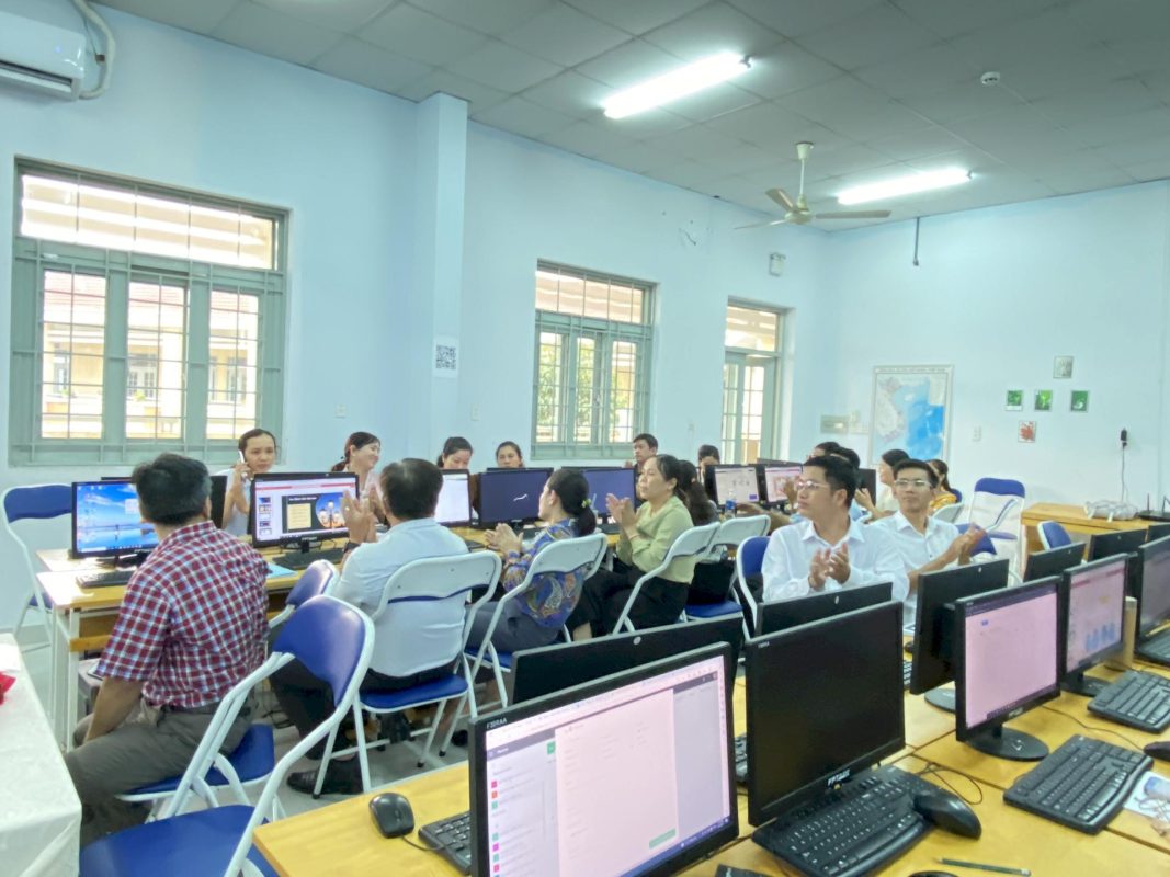 300 học viên của 12 lớp đã có cơ hội trình bày những kết quả nghiên cứu, dự án áp dụng công nghệ thông tin vào thực tế, cũng như chia sẻ những cảm nhận và trải nghiệm trong quá trình học tập. Bà Nguyễn Thị Ngọc Giàu – phó trưởng phòng khoa học và công nghệ Thành Phố và Ông Nguyễn Thái Dũng – chuyên viên phòng Nội vụ Thành phố – Đại diện lãnh đạo UBND Thành phố Thủ Đức đã đến tham gia đánh giá buổi báo cáo. đã nhận xét đánh giá từ học viên, gửi lời chúc mừng và khen ngợi tới toàn thể học viên đã hoàn thành khóa học một cách xuất sắc và tham gia tích cực vào các hoạt động học tập, trao đổi. Bên cạnh đó cũng gửi cảm ơn đến những đóng góp, tổ chức và chuẩn bị chu đáo từ ban tổ chức, các giảng viên, đội ngũ trợ giảng và toàn bộ nhân viên liên quan. Sự hỗ trợ chặt chẽ và chuyên nghiệp của họ đã tạo nên một khung trình bài bản và hiệu quả cho buổi báo cáo cuối khóa tập huấn.
