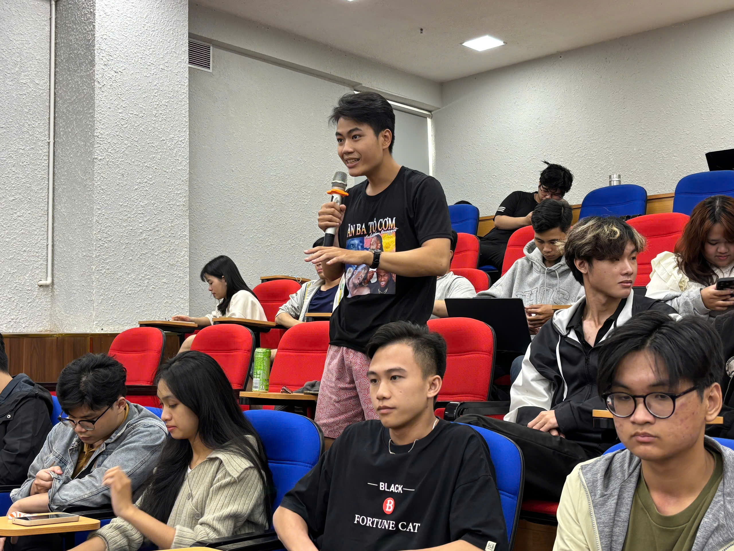 Tại hội thảo, Cô Nguyễn Phương Huỳnh – Giảng viên Bộ môn Kỹ năng mềm, và 2 diễn giả khách mời Anh Nguyễn Thành Trung và Đặng Huỳnh Thành Trung Tín – CMO/Co-Founder của ClickAI Việt Nam đã chia sẻ những kiến thức bổ ích và chỉ ra một sự thật không thể tránh khỏi: thị trường lao động đang thay đổi nhanh hơn bao giờ hết. AI và tự động hoá sẽ tạo ra hàng triệu công việc mới, nhưng cũng đồng thời khiến nhiều vai trò biến mất.