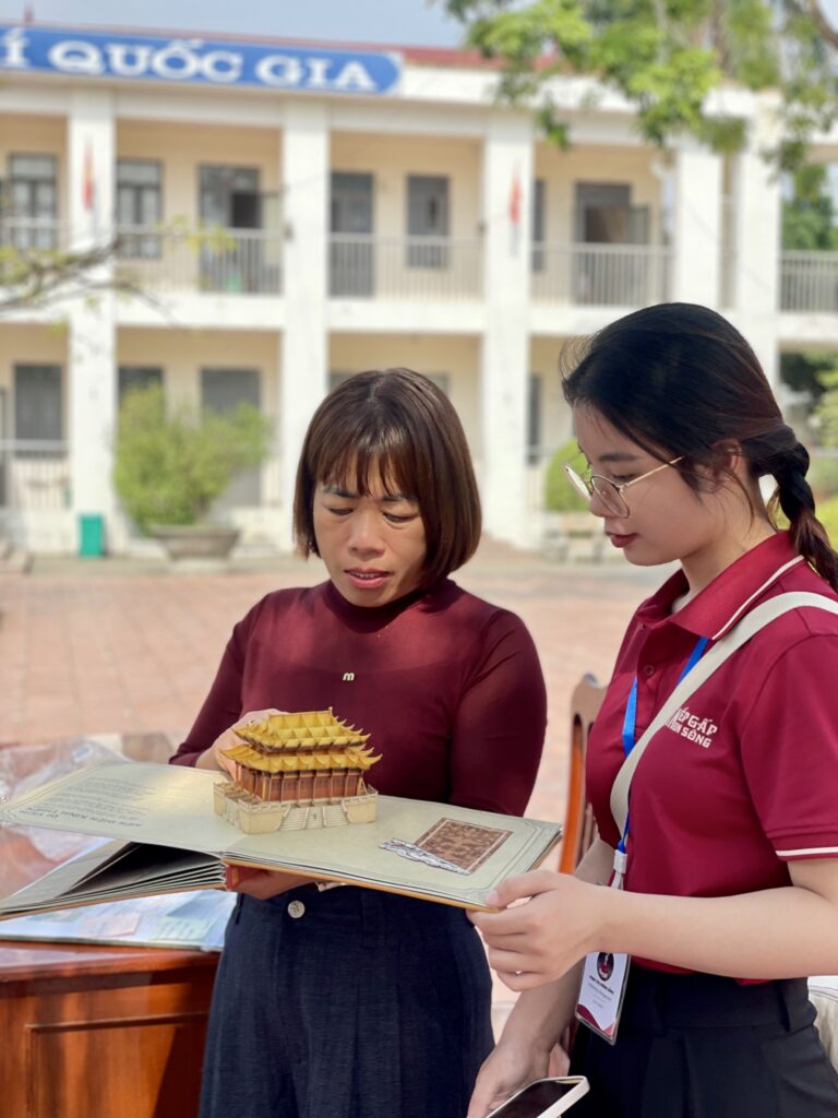Xuất phát từ một sự tình cờ khi tiếp xúc với nghệ thuật pop-up (sách nổi), nhóm đã nhận ra tiềm năng của loại hình này trong việc kể chuyện. “ Chúng em thực sự ấn tượng với cách mà pop-up có thể kể chuyện bằng hình ảnh và không gian, đặc biệt phù hợp để truyền tải những nội dung giàu cảm xúc như văn hóa và lịch sử”, Nguyễn Thị Hường – Trưởng nhóm dự án chia sẻ.