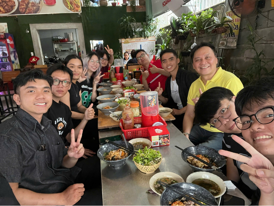 Sau buổi định hướng, cả nhóm được anh Paul dẫn đi ăn trưa và thưởng thức bún chả nem cua bể – một hương vị đặc sản Hải Phòng giữa lòng Sài Gòn.