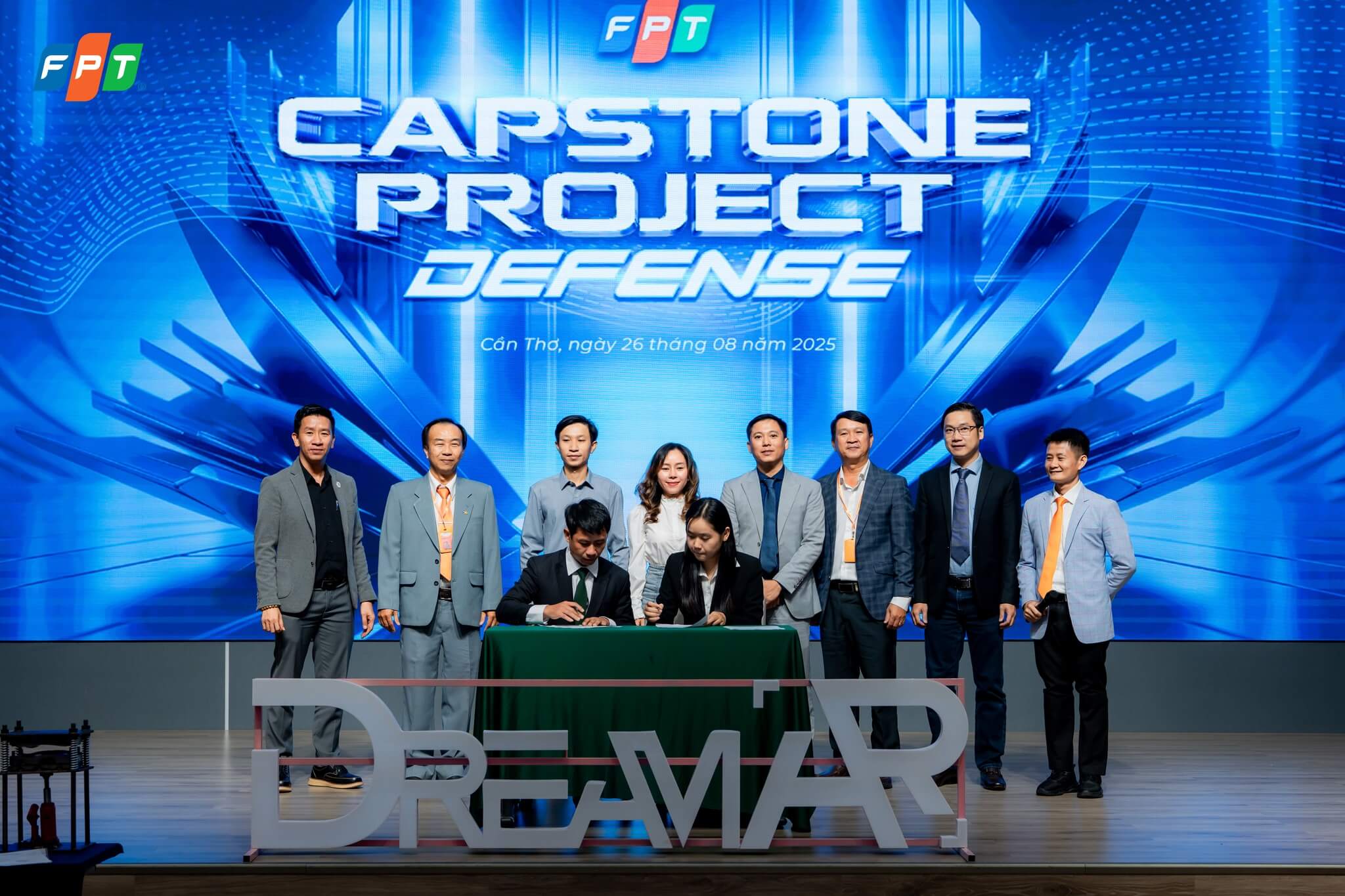 Ngày 26/8/2025, tại buổi bảo vệ đồ án tốt nghiệp của sinh viên Trường Đại học FPT, 4 nhóm sinh viên đến từ các chuyên ngành khác nhau đã mang đến những đồ án liên ngành ấn tượng, thể hiện kiến thức chuyên môn, khả năng làm việc nhóm hiệu quả và ứng dụng thực tiễn vượt trội. Buổi bảo vệ có sự tham dự của Hội đồng phản biện, đại diện doanh nghiệp, phụ huynh và các bạn sinh viên – tạo nên một không gian học thuật chuyên nghiệp, truyền cảm hứng và đậm chất thực tiễn.