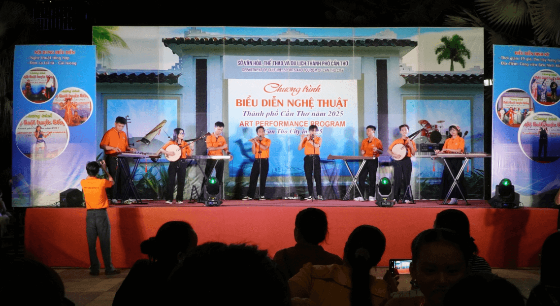 Sinh viên Cần Thơ mang sáo, đàn tranh, đàn nguyệt… biểu diễn ở bến Ninh Kiều