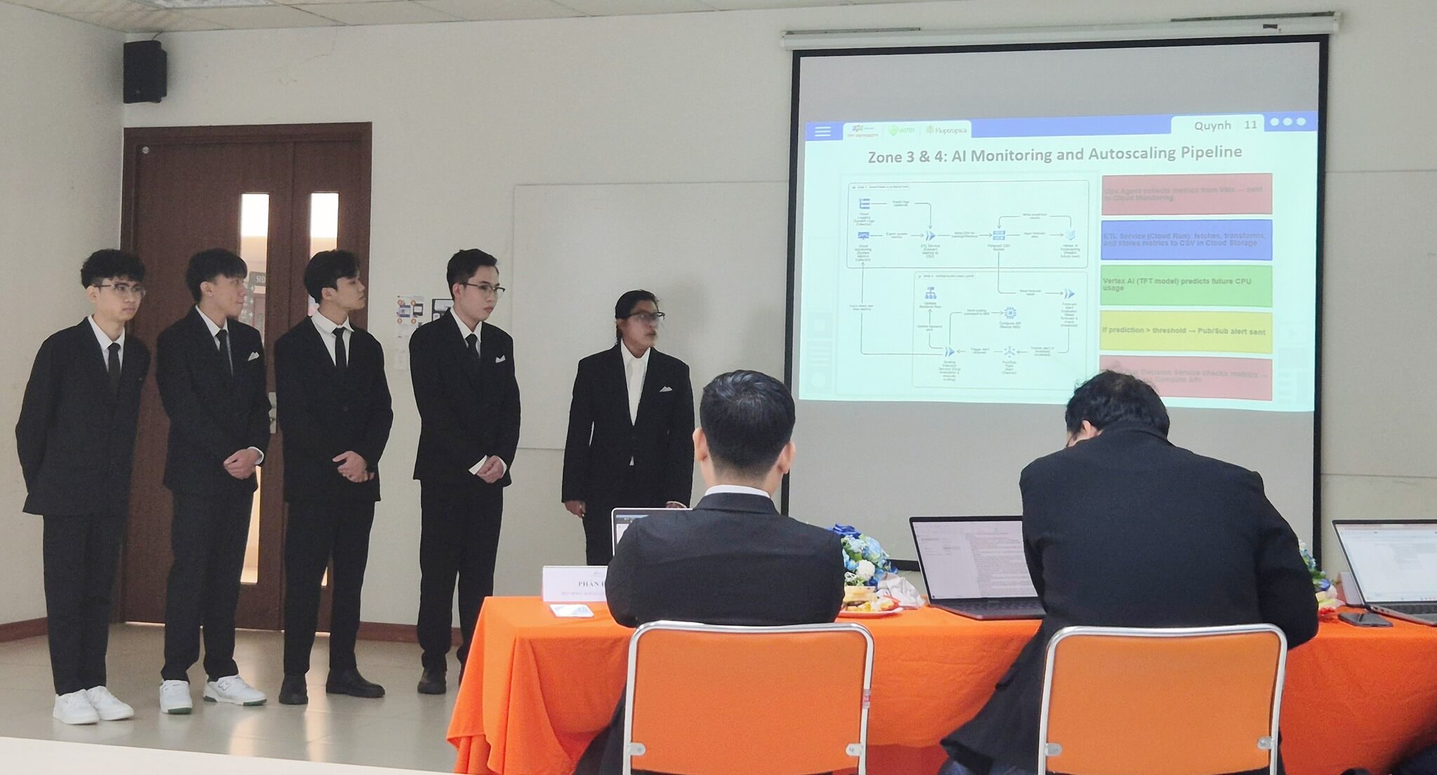 Với khát vọng vượt khỏi khuôn khổ giảng đường để tạo ra một sản phẩm công nghệ “hàng thật, việc thật”, nhóm sinh viên chuyên ngành An toàn thông tin – Trường Đại học FPT gồm các bạn Nguyễn Thương Tín, Nguyễn Xuân Quang Vinh, Trần Trương Tuấn Vỷ, Mai Hoàng Kha và Văn Mỷ Quỳnh đã thành công triển khai một hệ thống tối ưu hóa tài nguyên trong hạ tầng điện toán đám mây bằng trí tuệ nhân tạo – hướng đến đối tượng doanh nghiệp vừa và nhỏ (SMEs), với yêu cầu cao về hiệu năng, bảo mật và tiết kiệm chi phí.