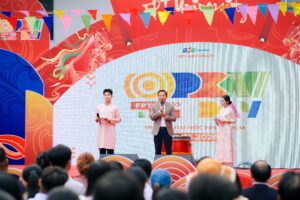 Thầy Lê Bình Trung – Phó Giám đốc Trường Đại học FPT phân hiệu Thành phố Hồ Chí Minh phát biểu tại lễ khai mạc FPTU Big Open day và Hội xuân Làng cóc