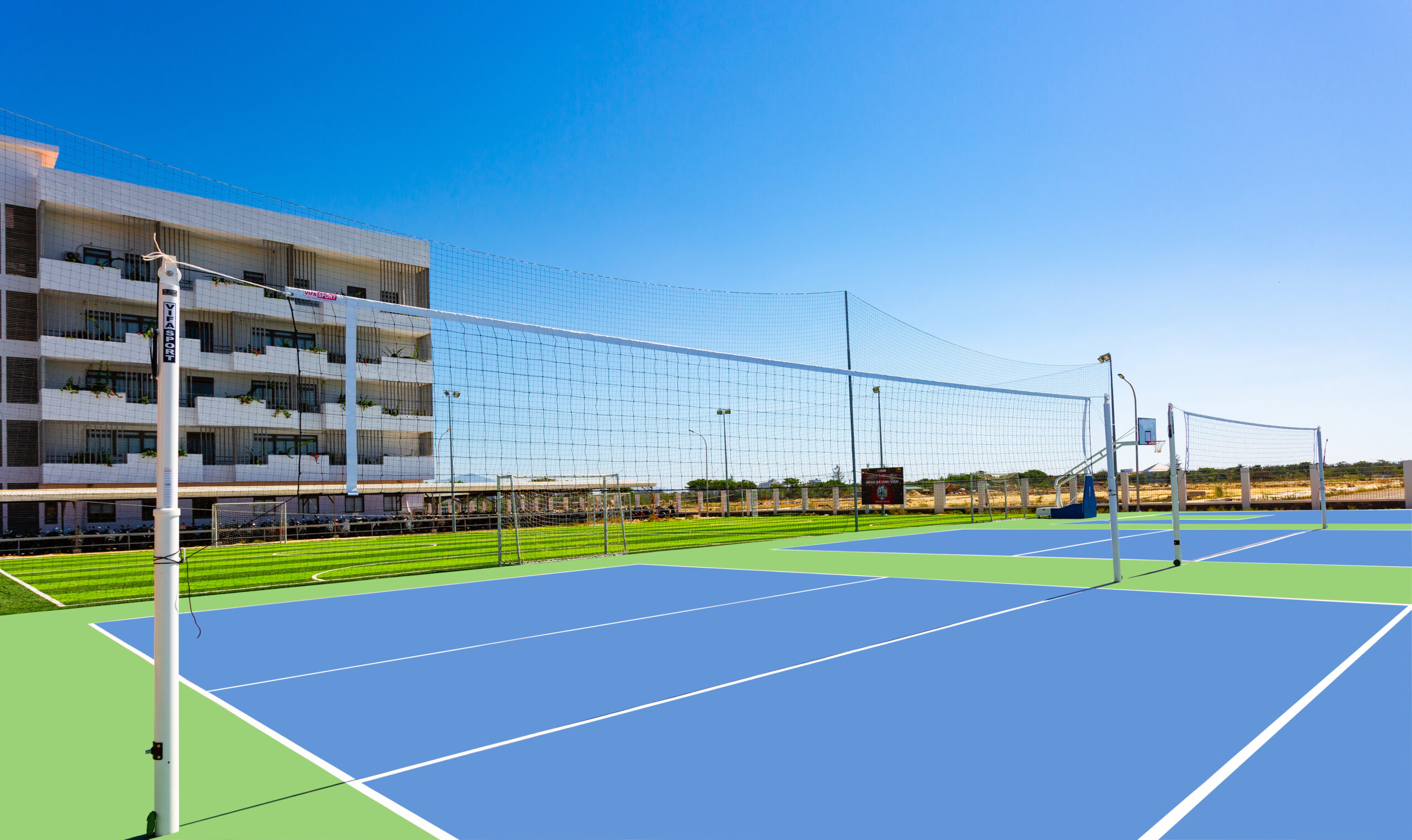 Sân bóng rổ, 2 sân bóng chuyền và khu street workout phục vụ hoạt động thể thao.