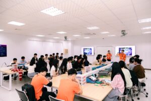 Một lớp học trải nghiệm chuyên ngành Vi mạch bán dẫn cho học sinh THPT tại Trường Đại học FPT.
