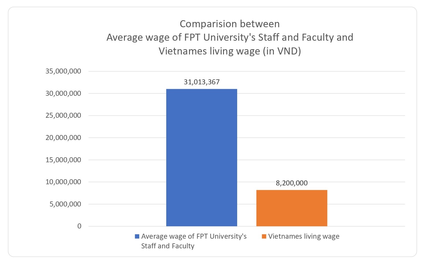 Comparision between Average wage of FPT University’s Staff and Faculty and Vietnames living wage (in VND)