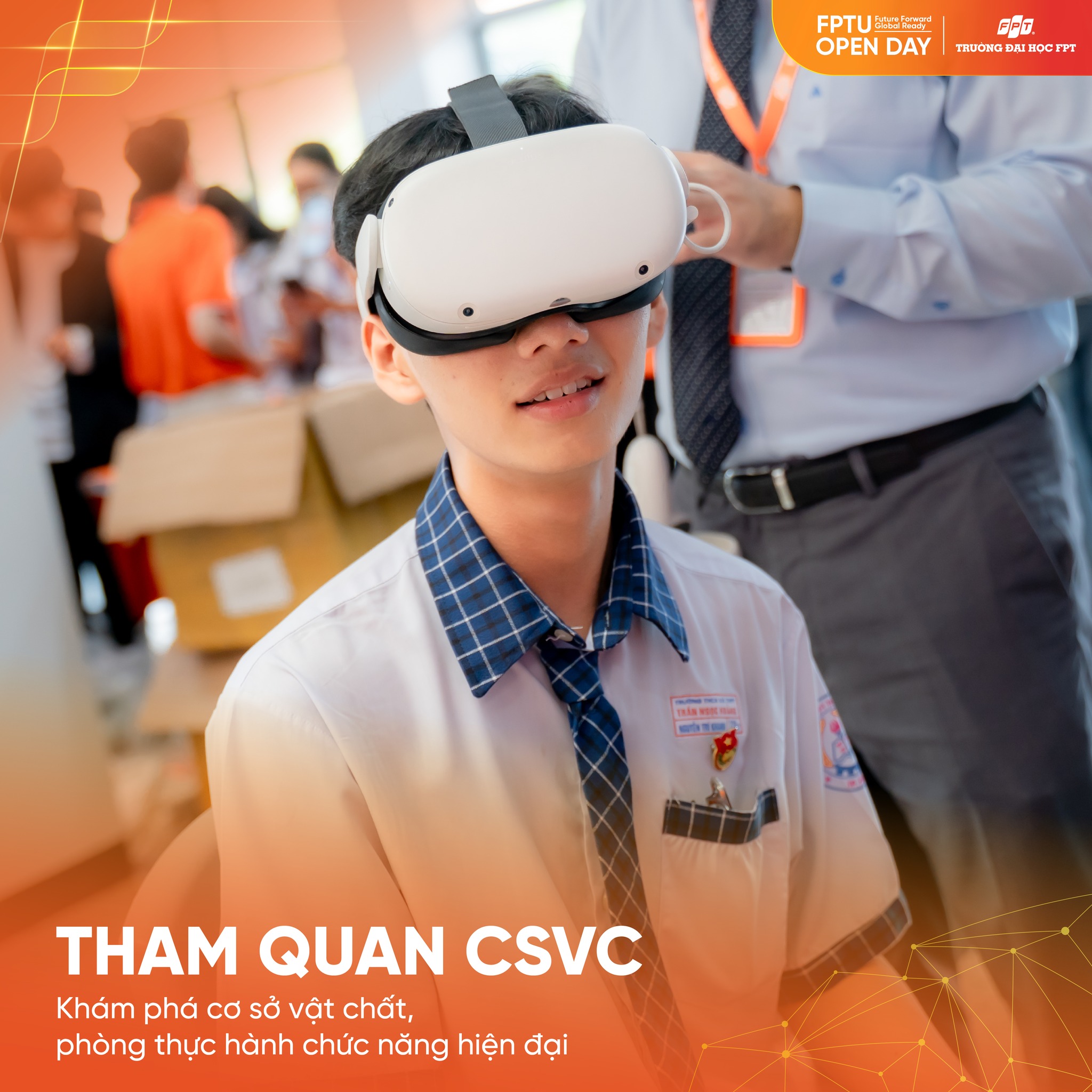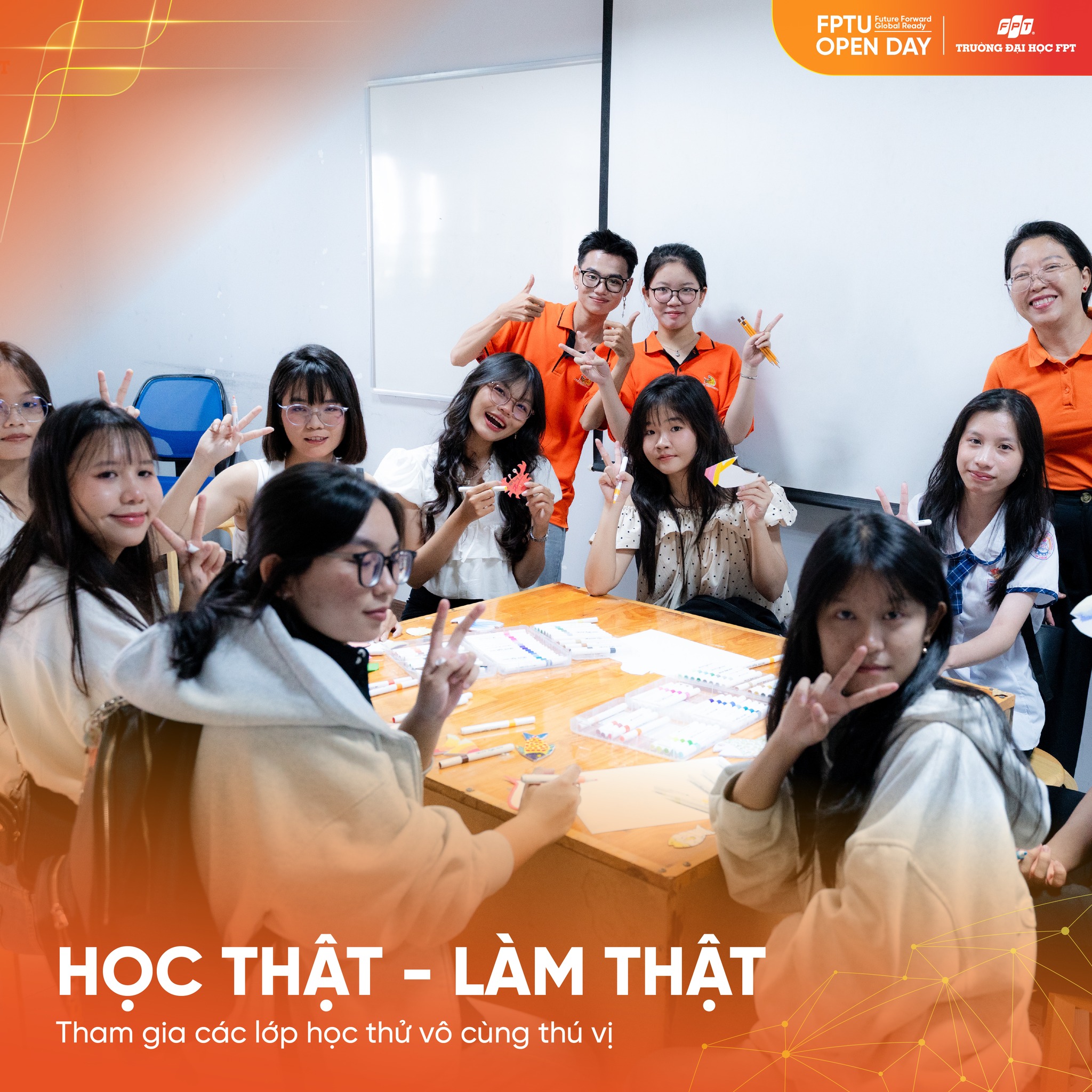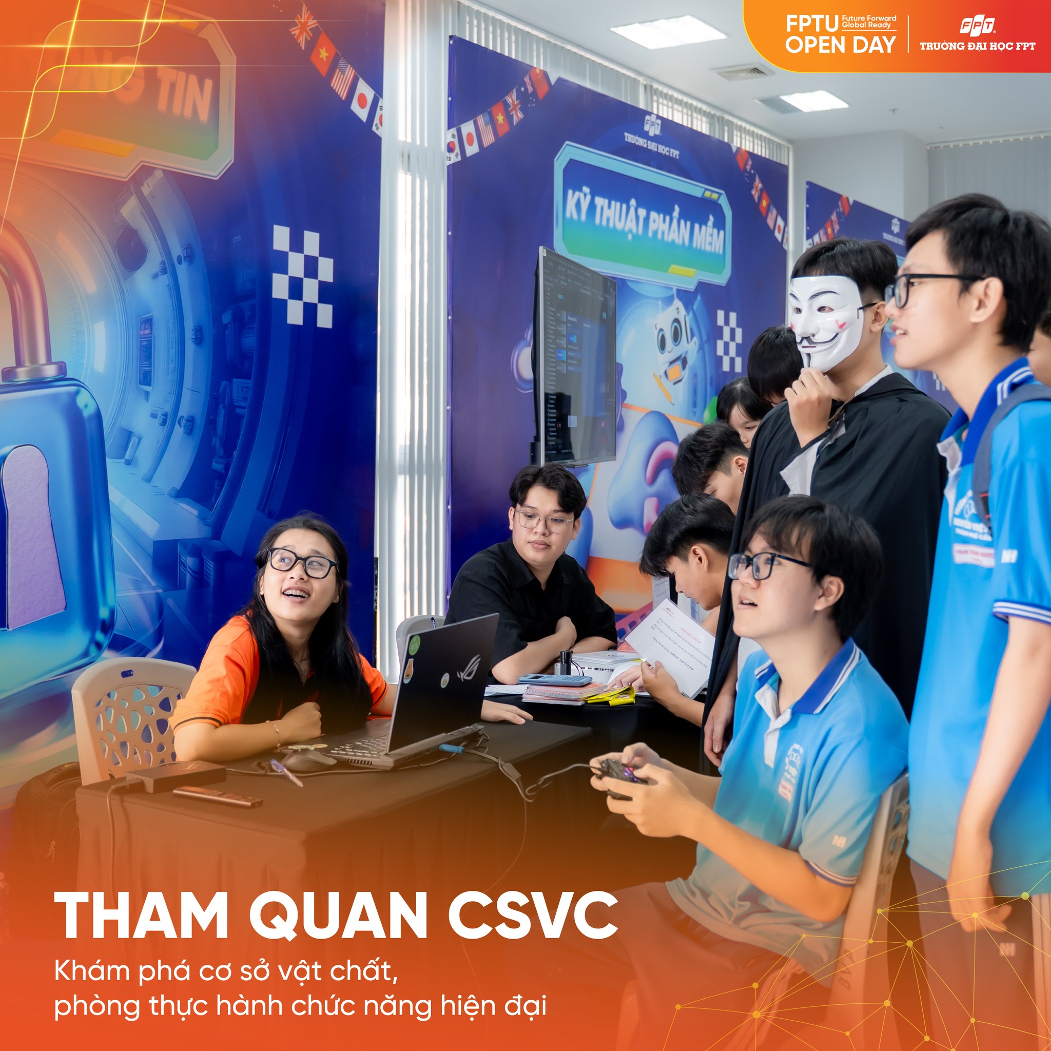Một trong những điểm nhấn nổi bật của FPTU Open Day chính là hành trình tham quan cơ sở vật chất và trải nghiệm ngành nghề thực tế. Tại đây, học sinh được trực tiếp gặp gỡ giảng viên, sinh viên các ngành: Công nghệ thông tin, Quản trị kinh doanh, Luật, Ngôn ngữ Anh, Ngôn ngữ Hàn, Ngôn ngữ Trung, Công nghệ Truyền thông, Thiết kế Đồ hoạ – Mỹ thuật số, Du lịch – Lữ hành, Quản trị Khách sạn, Khởi nghiệp…