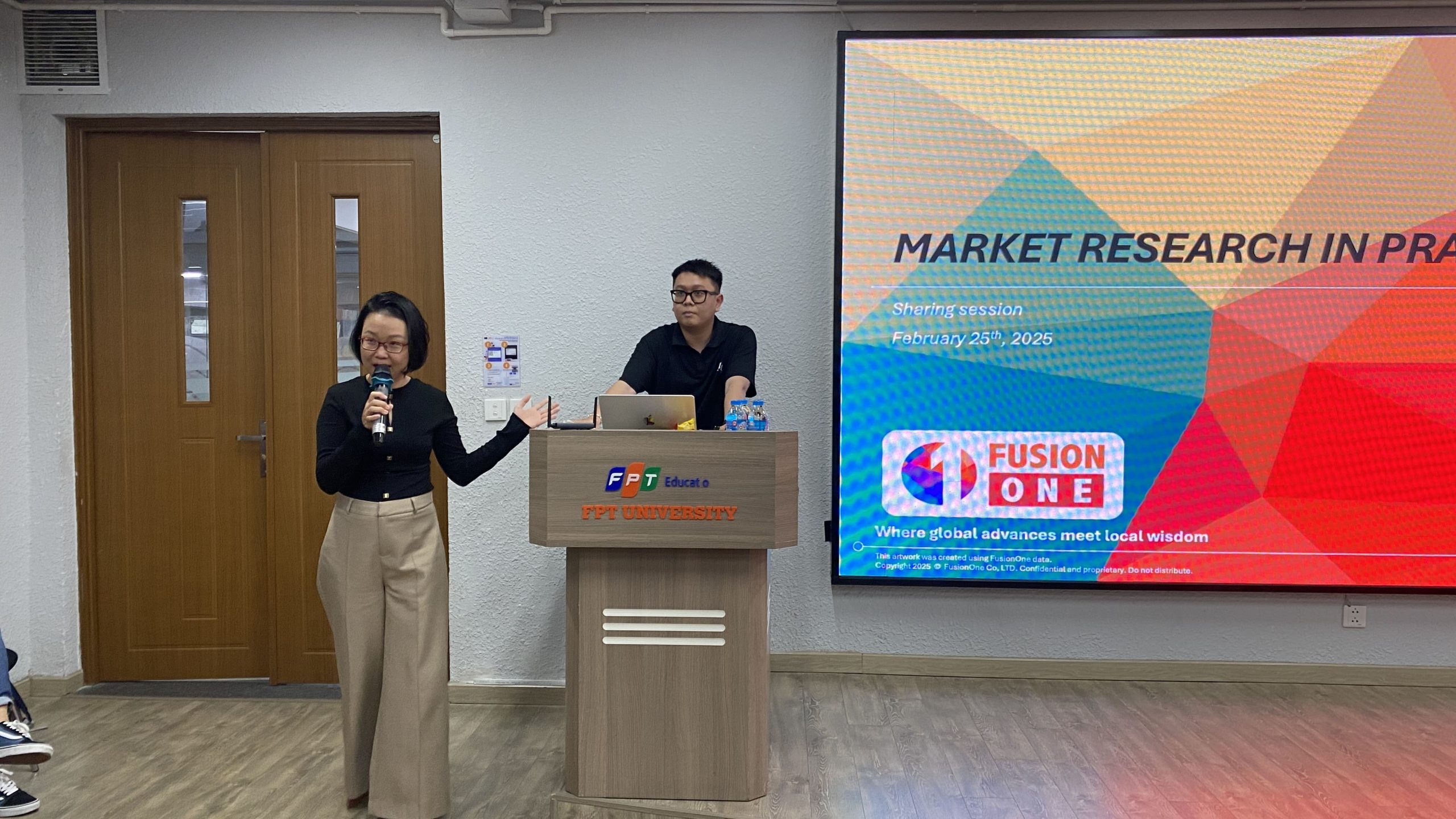 Các bạn sinh viên được trang bị tư duy nghiên cứu thị trường một cách bài bản, hiểu rõ vai trò quan trọng của nghiên cứu trong việc ra quyết định kinh doanh cũng như học thuật. Các diễn giả đã hướng dẫn các phương pháp thực tiễn như khảo sát khách hàng, phân tích đối thủ cạnh tranh, dự báo xu hướng thị trường và thu thập phản hồi thời gian thực, giúp sinh viên có cái nhìn tổng quan và có thể áp dụng ngay vào dự án của mình cùng các minh họa và nghiên cứu trực quan từ FusionOne