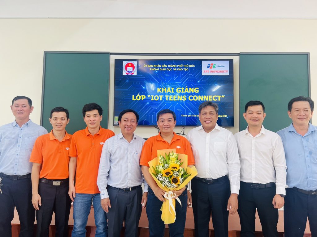 Các lãnh đạo của Phòng Giáo dục Tp. Thủ Đức và đại diện Trường ĐH FPT – Trưởng phòng QHDN – anh Nguyễn Trần Phước Bảo