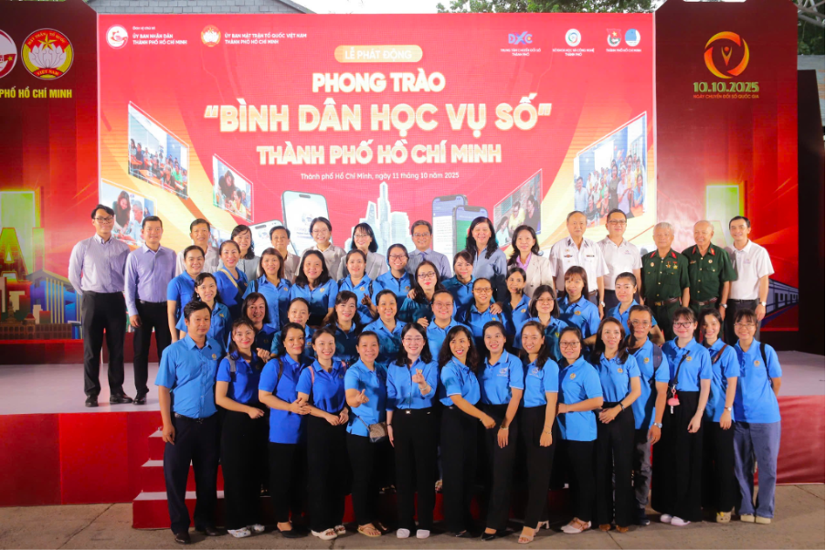 Sáng ngày 11/10/2025, nhân Ngày Chuyển đổi số Quốc gia, UBND TP.HCM phối hợp cùng Ủy ban Mặt trận Tổ quốc Việt Nam TP.HCM và các tổ chức chính trị – xã hội đã tổ chức Lễ phát động phong trào “Bình dân học vụ số”. Sự kiện thu hút hơn 700 đại biểu đến từ các sở, ban, ngành, tổ chức chính trị – xã hội và lực lượng tình nguyện, với mục tiêu lan tỏa thông điệp “Mỗi công dân là một hạt nhân chuyển đổi số.” Phó Chủ tịch UBND TP.HCM Trần Thị Diệu Thúy nhấn mạnh, phong trào mang ý nghĩa thiết thực trong việc phổ cập kiến thức và kỹ năng số đến mọi tầng lớp nhân dân, qua đó thúc đẩy quá trình chuyển đổi số toàn diện của thành phố.