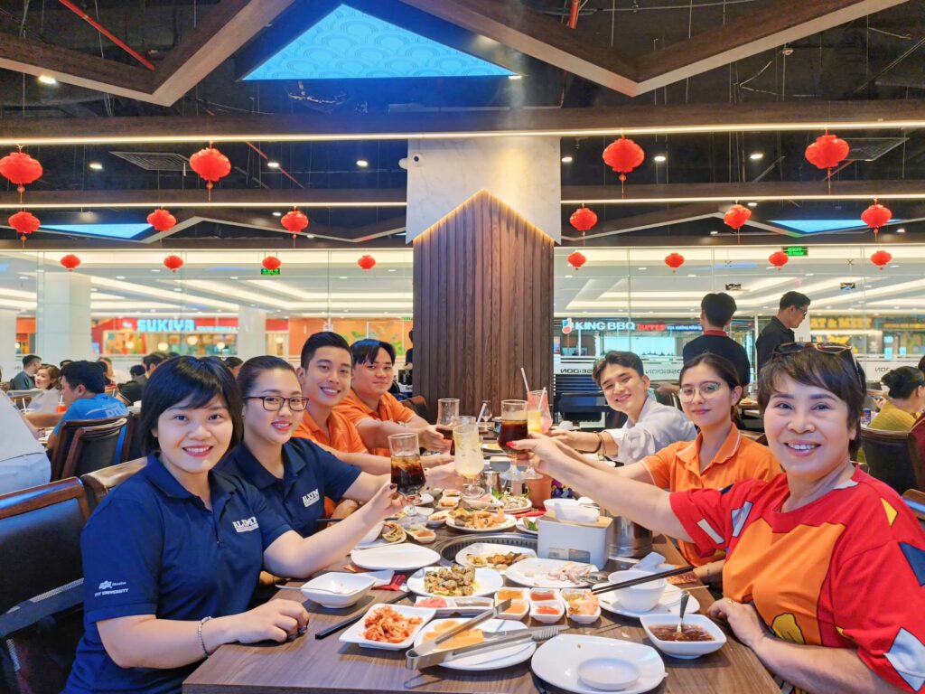 Hình ảnh sinh viên cùng các anh chị mentor đi ăn tất niên năm 2024