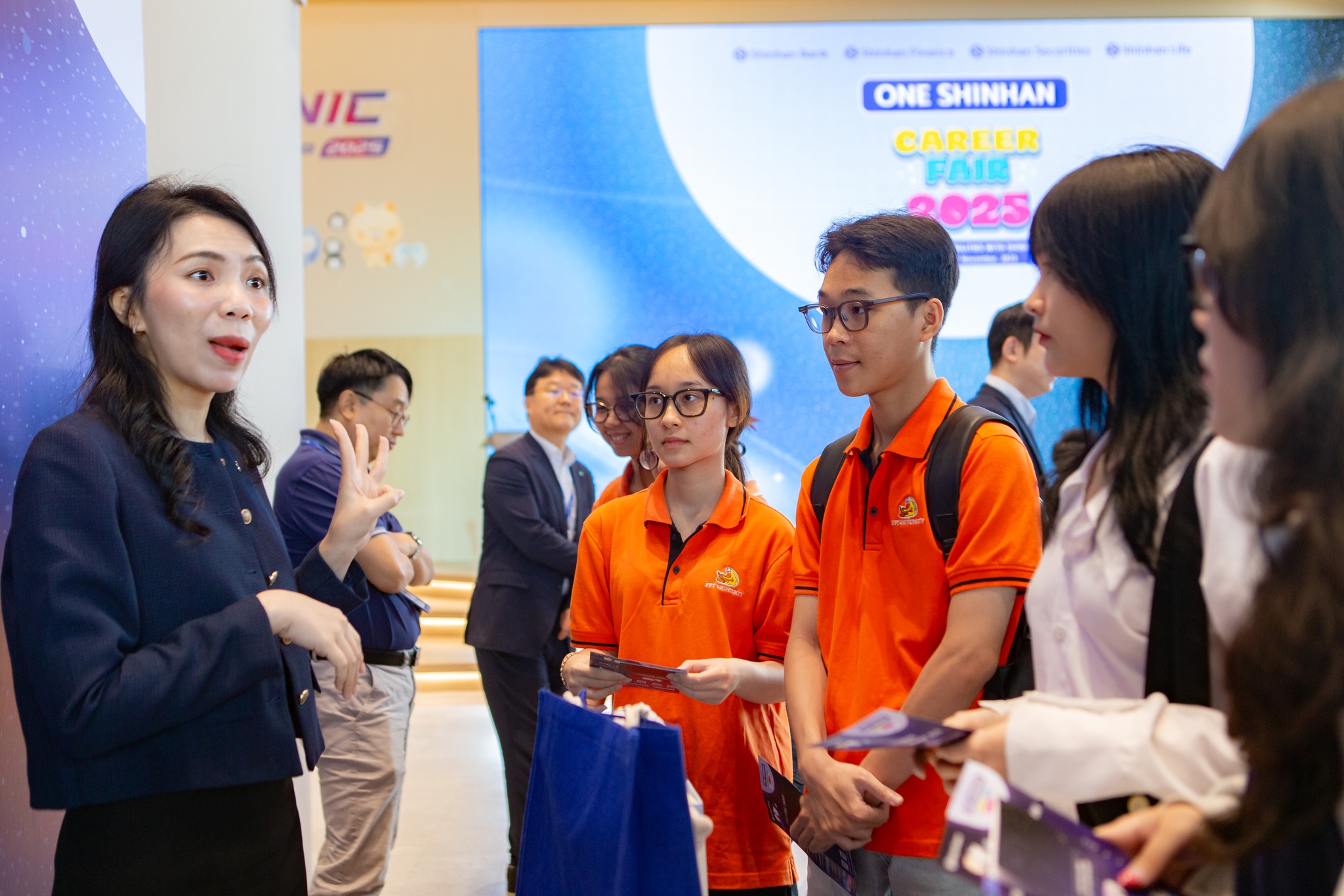 Ngày hội việc làm “Shinhan Career Day” mở ra cơ hội để sinh viên phỏng vấn trực tiếp cho các vị trí phù hợp, đồng thời “giải mã” quy trình tuyển dụng của một trong những tập đoàn tài chính hàng đầu Việt Nam. Ngay tại sự kiện, ứng viên được chính doanh nghiệp góp ý CV 1:1 để tối ưu hồ sơ và tiếp tục phỏng vấn – nhận việc tại chỗ khi phù hợp. Ngoài ra, sinh viên cũng được tham quan “Office tour” để hiểu rõ hơn về môi trường làm việc tại đây.