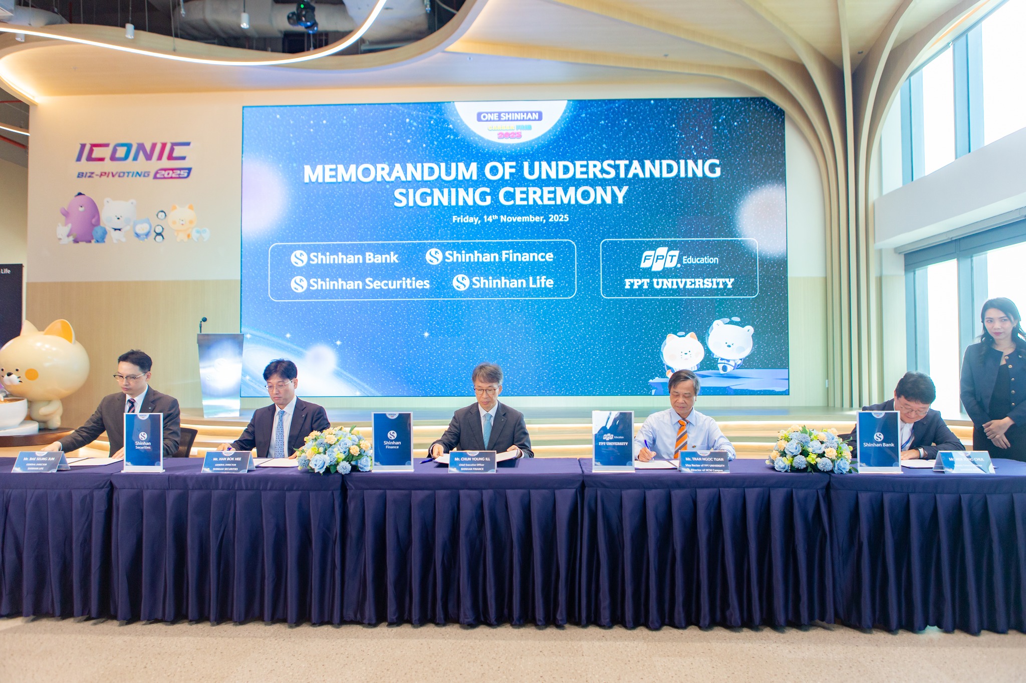 Sáng nay tại trụ sở Tập đoàn Tài chính Shinhan (Hàn Quốc), Trường Đại học FPT đã có buổi ký kết MOU với Shinhan Bank, Shinhan Finance vàShinhan Securities, Shinhan Life. Trong khuôn khổ sự kiện, sinh viên Trường Đại học FPT được tham gia Shinhan Career Day: phỏng vấn trực tiếp, tham quan môi trường làm việc và kết nối với đội ngũ tuyển dụng chuyên nghiệp của doanh nghiệp.