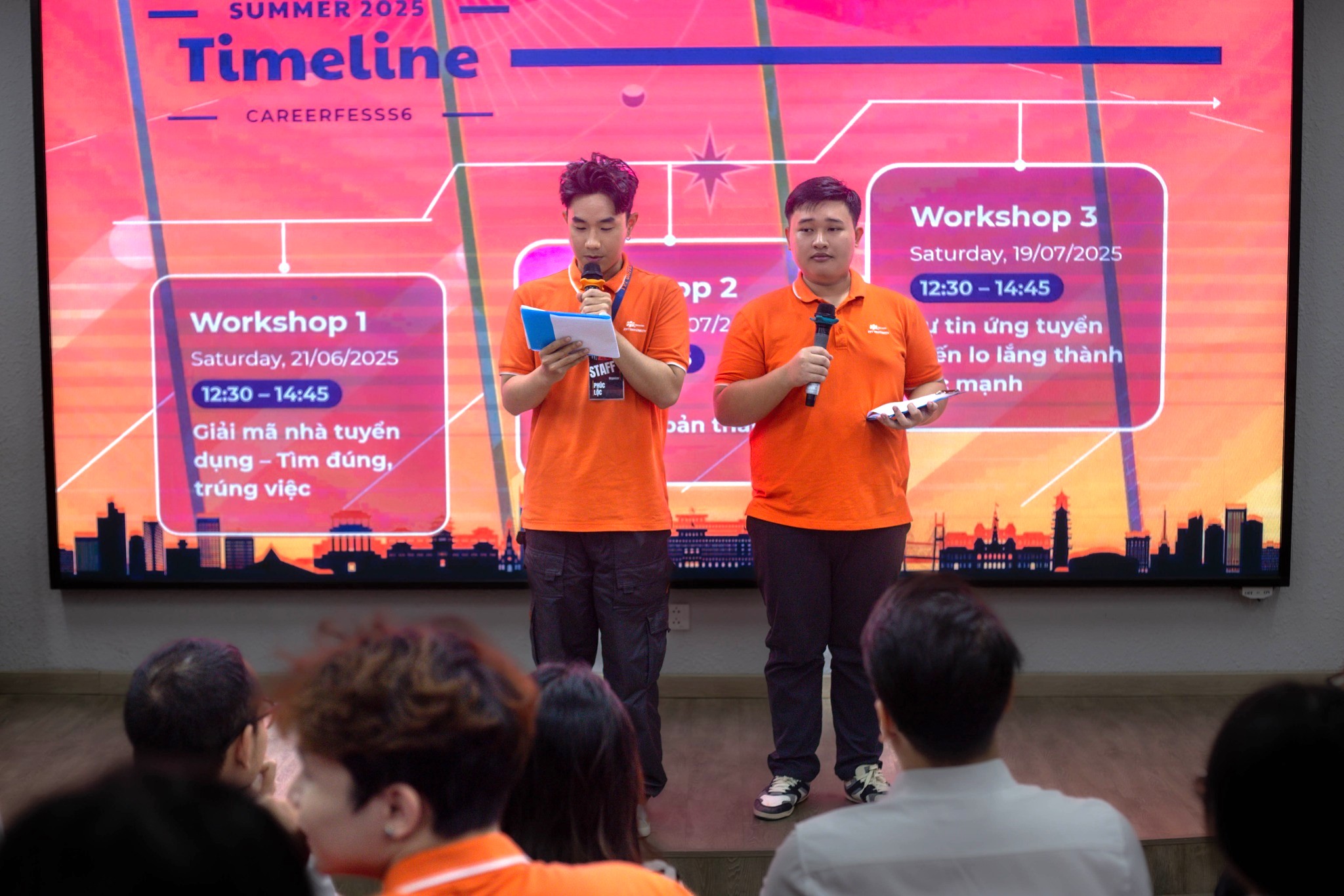 Sau hai workshop đầu tiên bùng nổ, Career Fes SS6 đã chính thức khép lại hành trình với Workshop cuối cùng – diễn ra vào ngày 19/07/2025 tại Đại học FPT HCMC – mang chủ đề “Tự Tin Ứng Tuyển – Biến Lo Lắng Thành Sức Mạnh”.