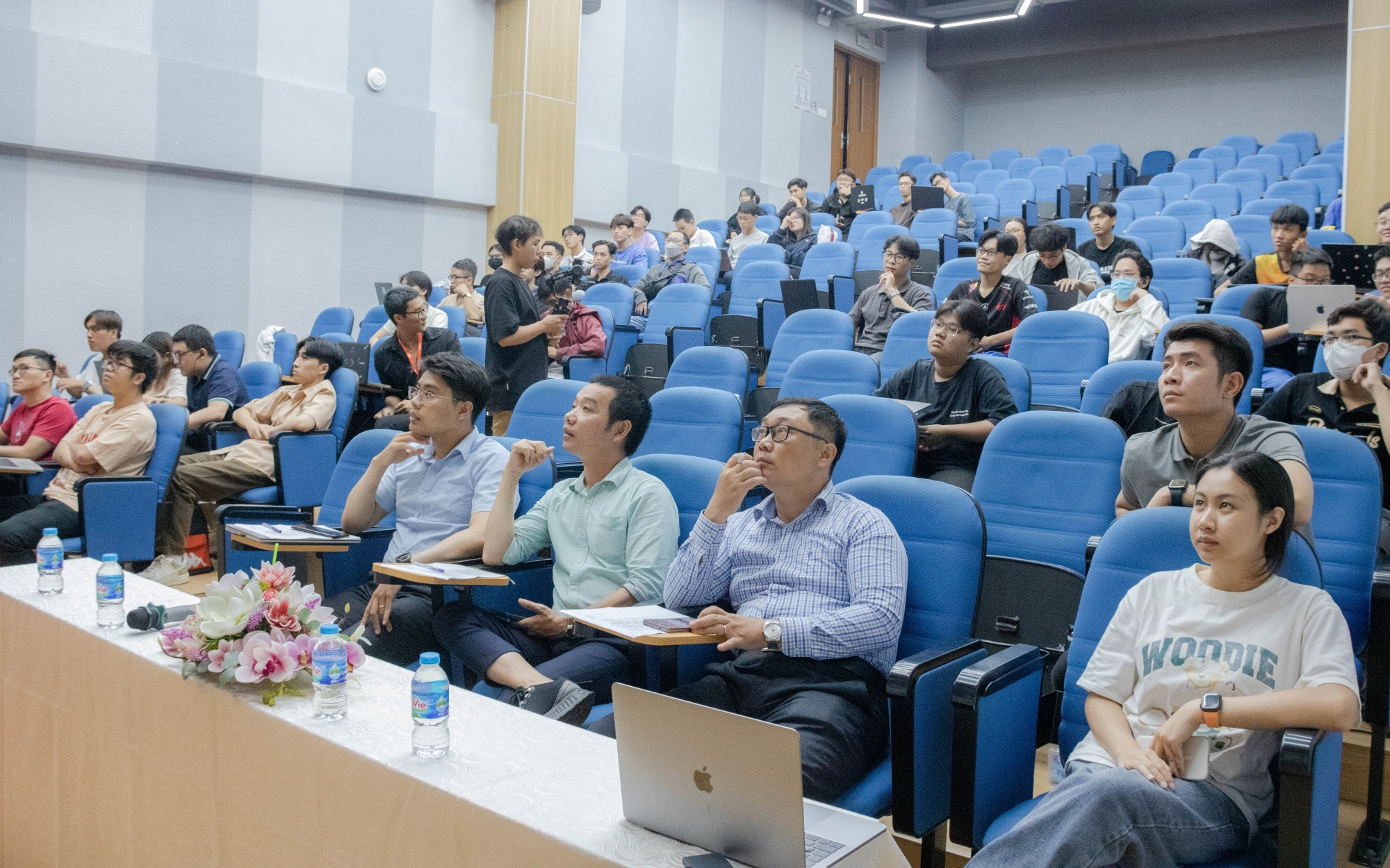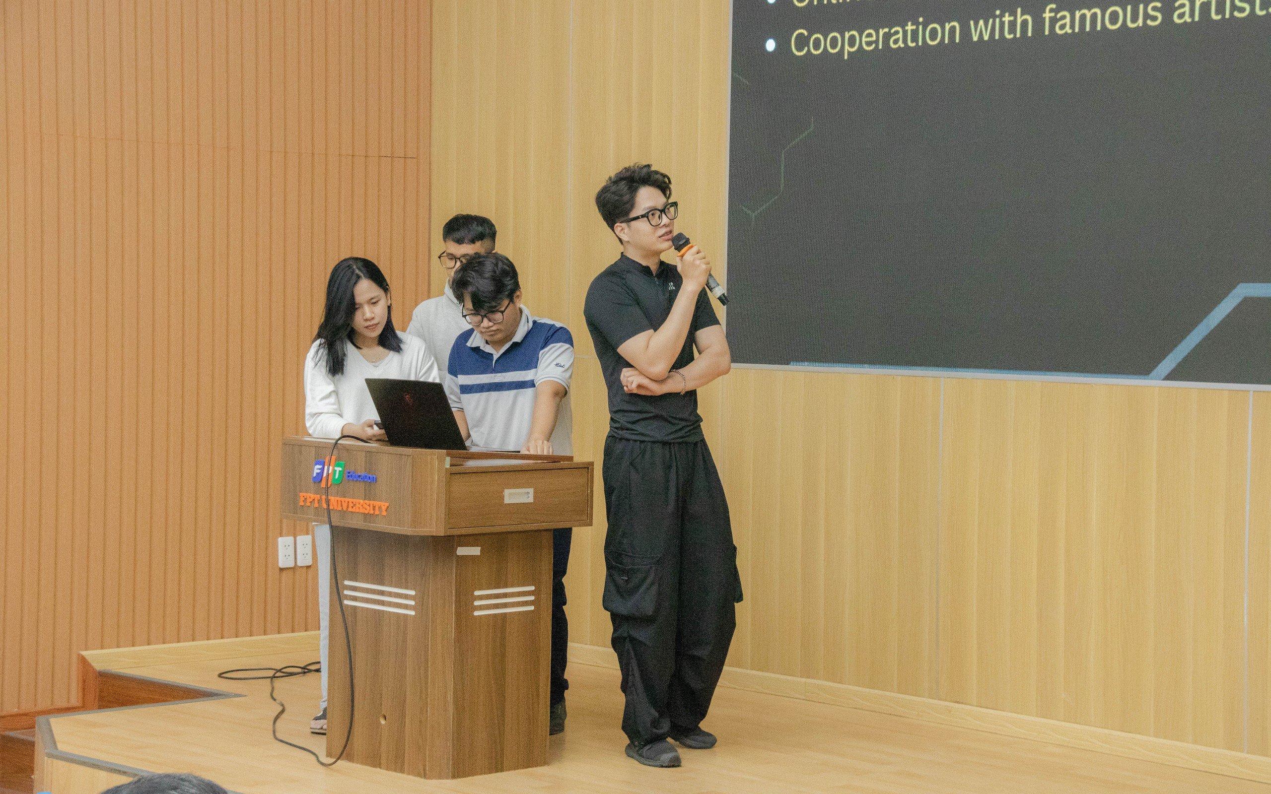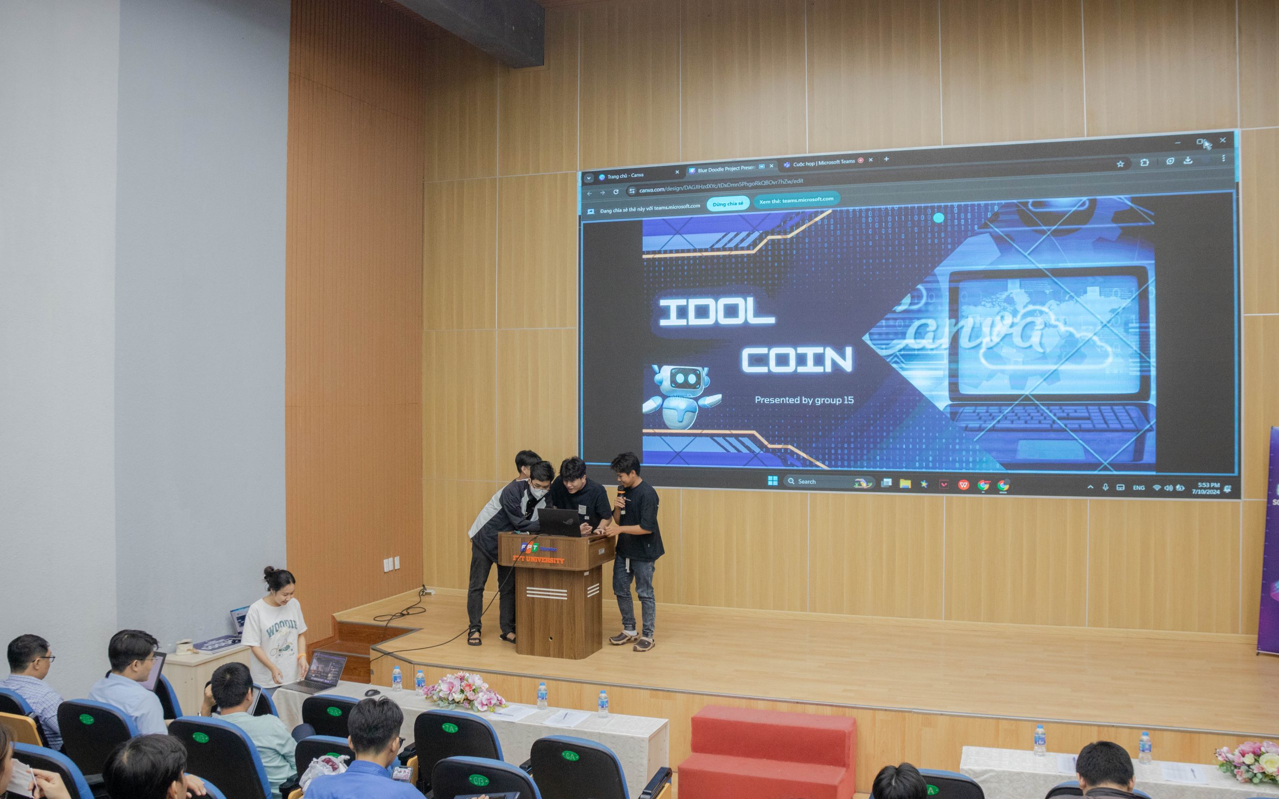 Dưới đây là một số hình ảnh các nhóm trình bày dự án của mình cực kì tập trung dưới những đánh giá tỉ mỉ của các ban giám khảo: