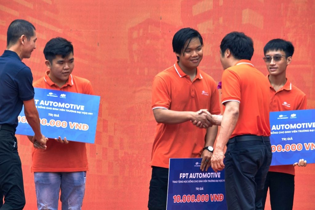 Không chỉ dừng lại ở đó, ông Huỳnh Tiến Dũng, Giám đốc sản xuất FPT Automotive Hồ Chí Minh, cũng đã trao học bổng cho bốn tân sinh viên trong chương trình Automotive của FPT Software. Những học bổng này thể hiện cam kết của FPT Software trong việc hỗ trợ và phát triển nguồn nhân lực chất lượng cao trong lĩnh vực công nghệ ô tô.