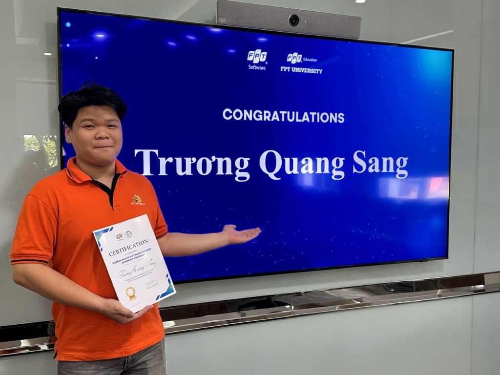 Ngoài việc học ra thì tụi em được tham gia rất nhiều sự kiện của FPT Software cho em cơ hội được gặp gỡ các CEO, các doanh nghiệp có tầm ảnh hưởng rất lớn mang lại nhiều kiến thức và trải nghiệm đáng quý.”