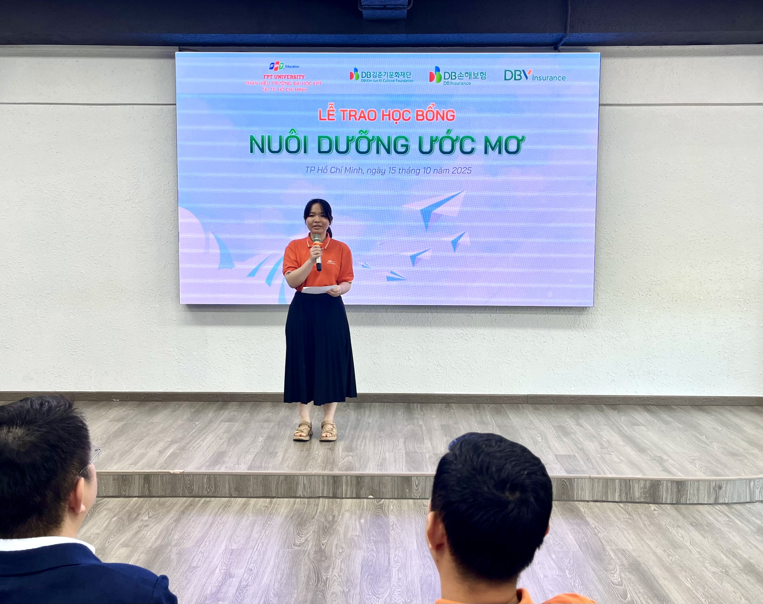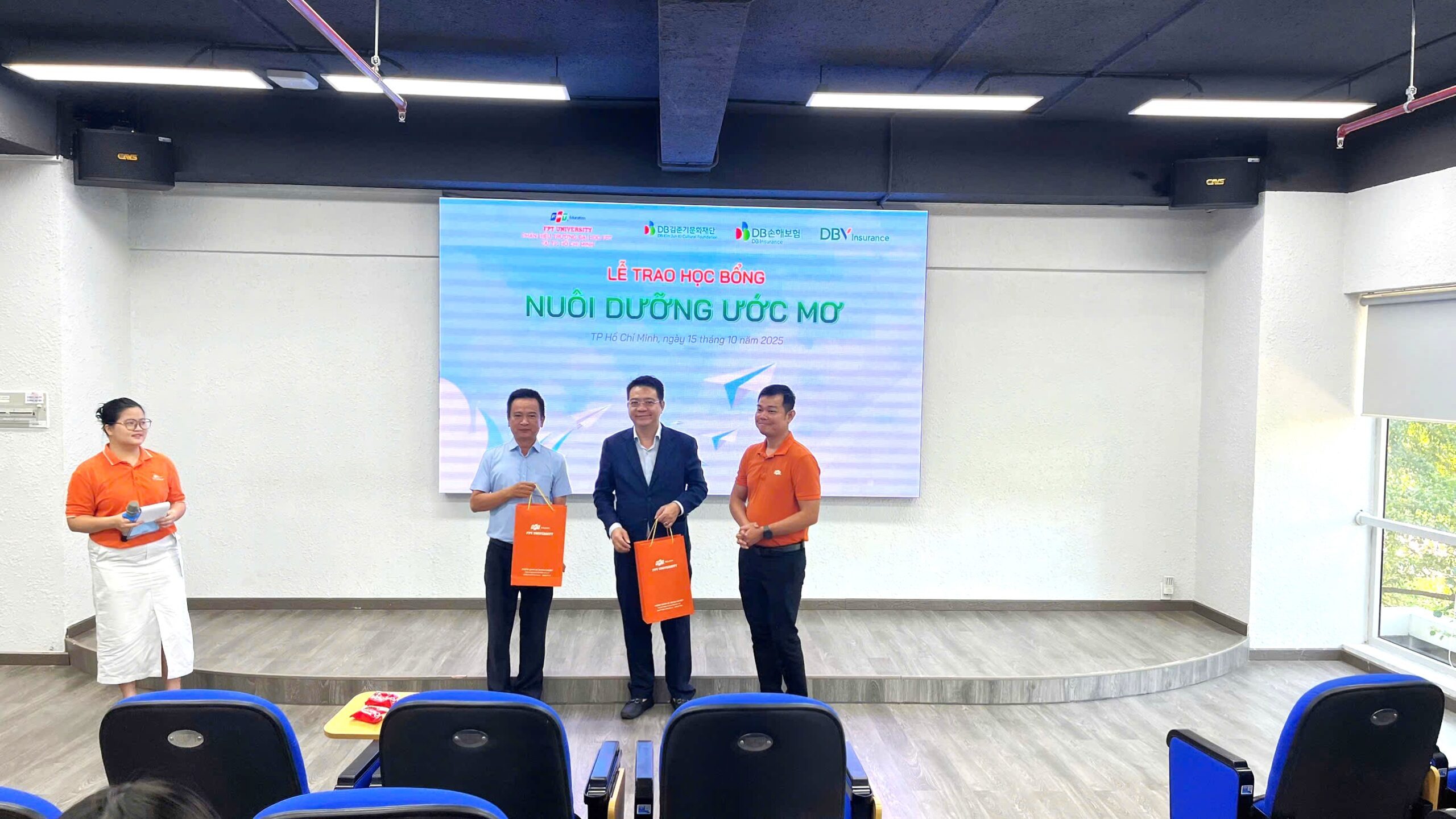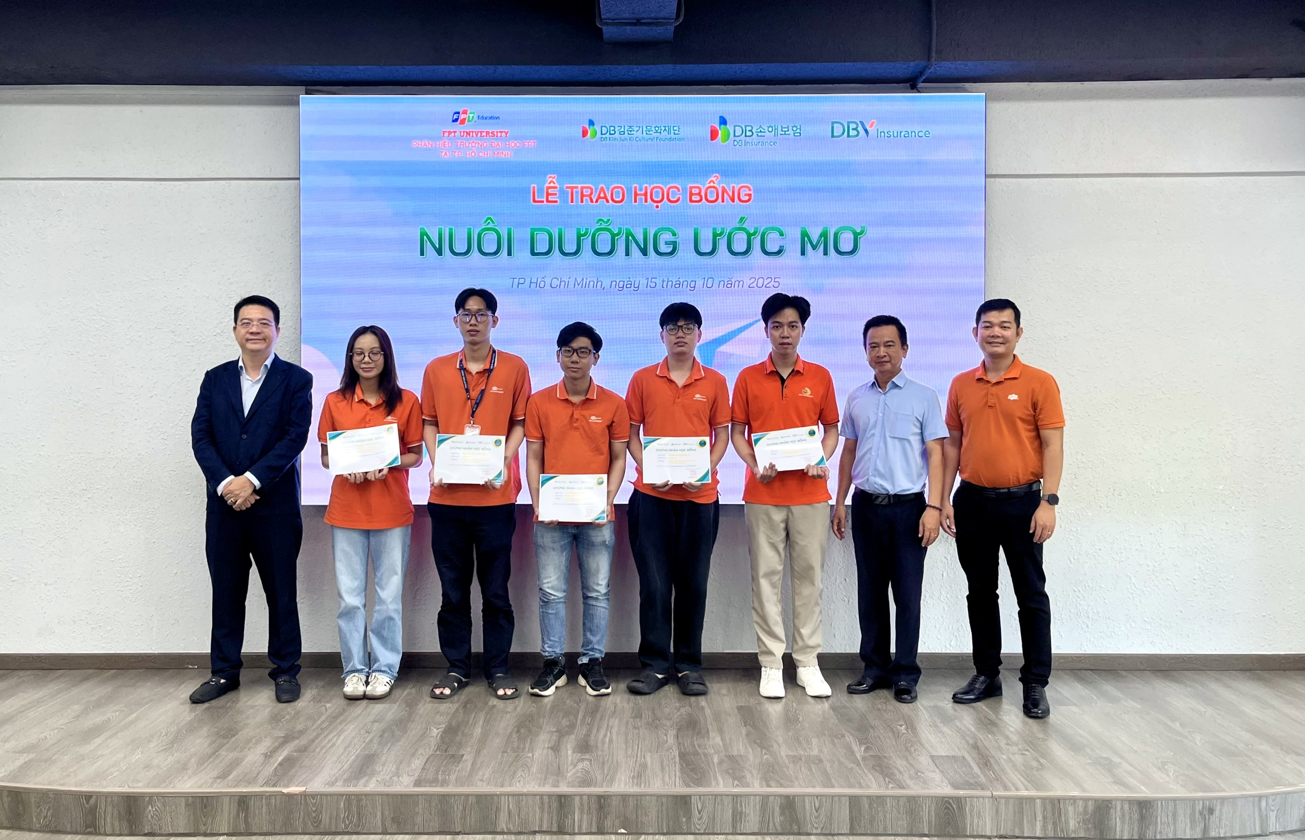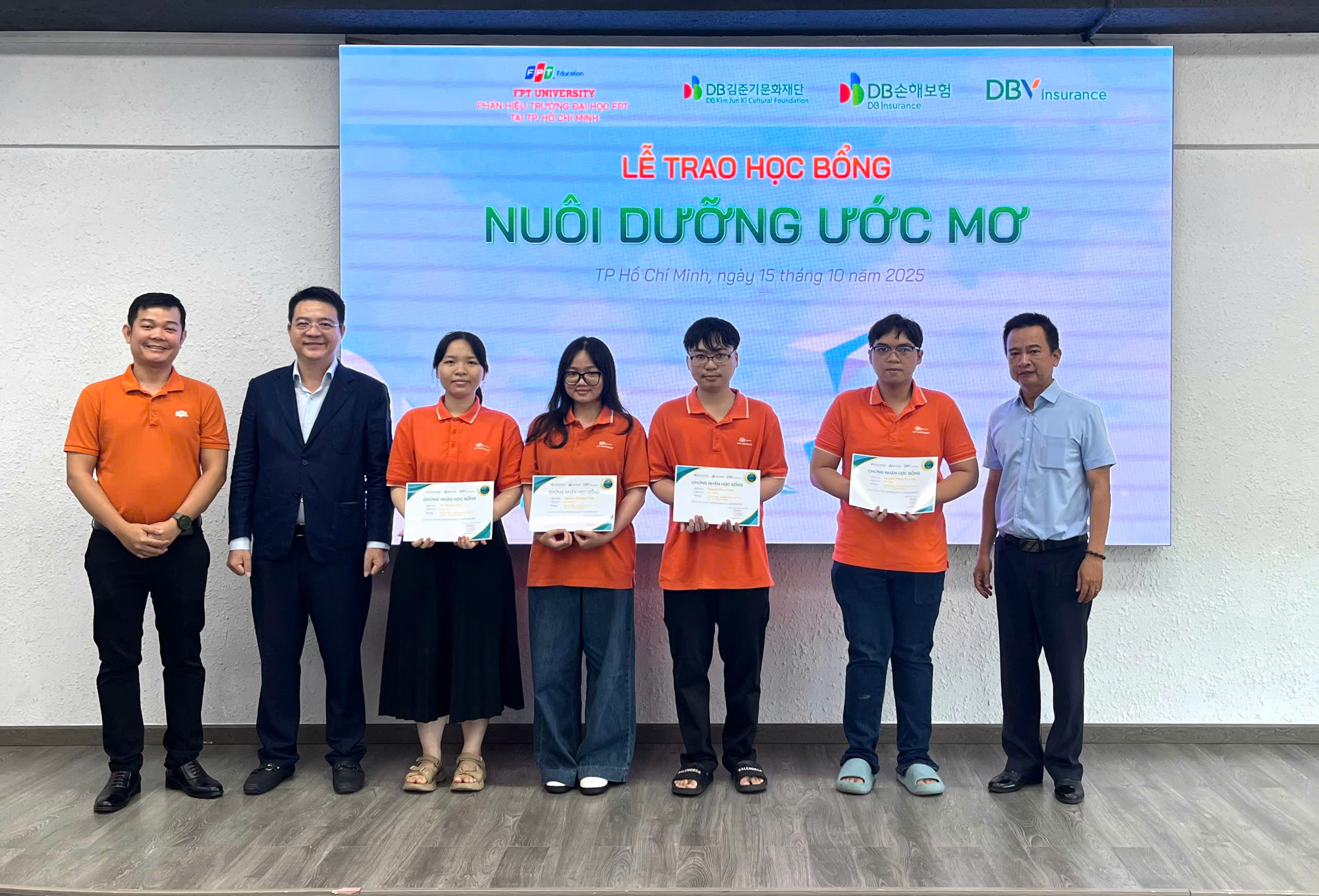Sáng ngày 15/10/2025, tại Trường Đại học FPT TP. Hồ Chí Minh đã diễn ra Lễ trao học bổng “Nuôi Dưỡng Ước Mơ” – chương trình ý nghĩa do Quỹ Văn hóa DB Kim Jun Ki, Công ty Bảo hiểm DBI Hàn Quốc và Công ty cổ phần Tập đoàn Bảo hiểm DBV tài trợ, phối hợp tổ chức cùng Trường Đại học FPT và Trung tâm Giao lưu Văn hóa Việt – Hàn (KCCC).