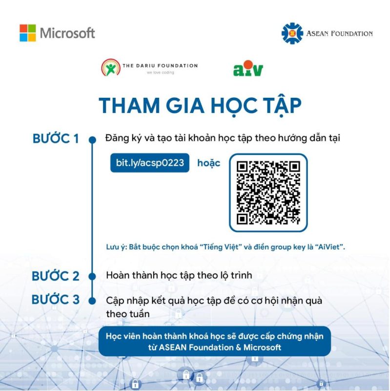 – Nhận chứng nhận do Microsoft và Quỹ ASEAN cấp sau khi hoàn thành (tải trực tuyến trên nền tảng khóa học)