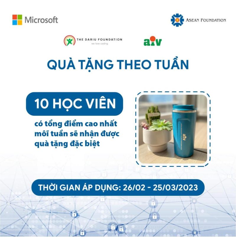 – Cơ hội nhận phần quà cho top học viên tiêu biểu theo kết quả tuần từ dự án