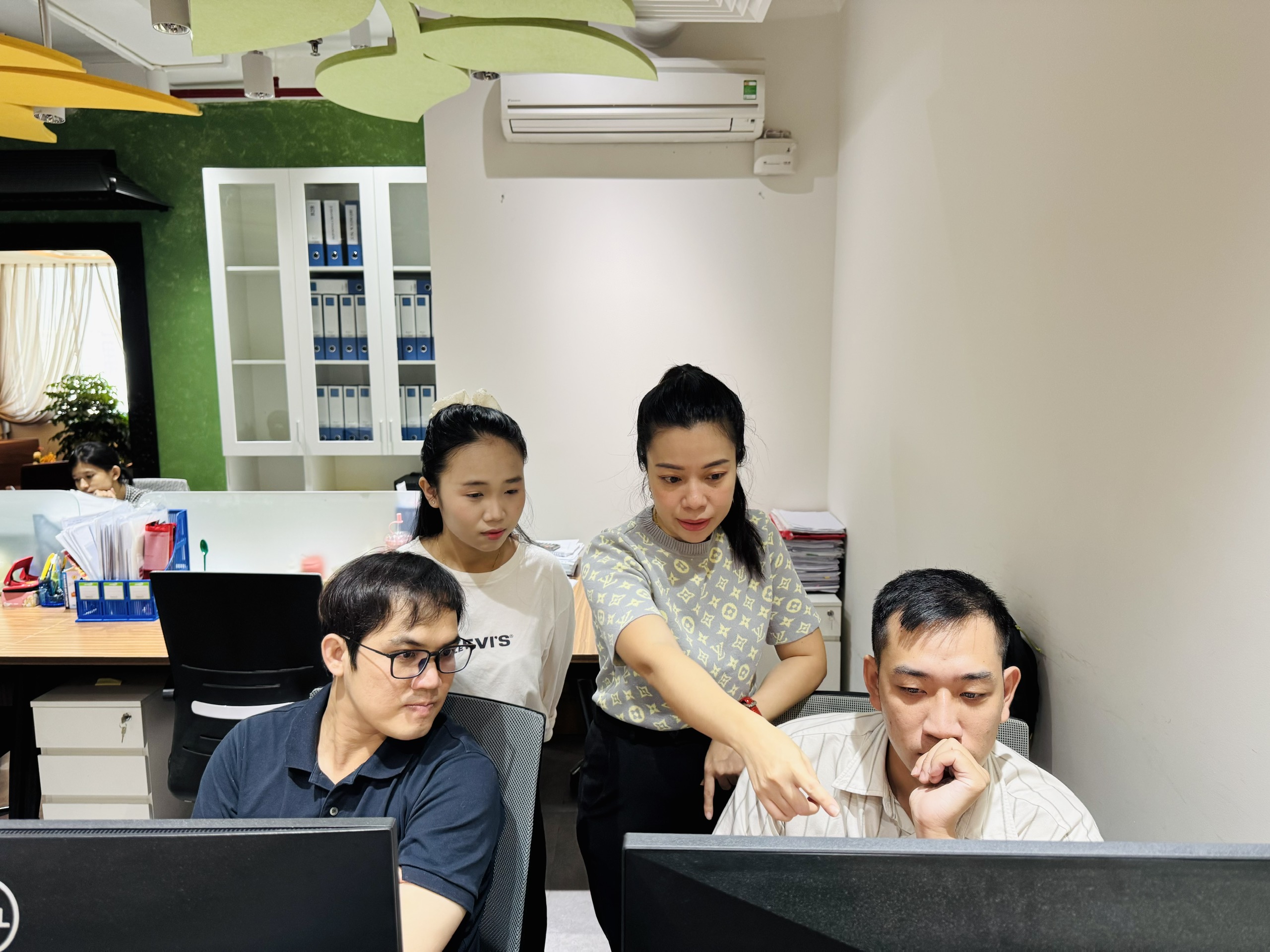 Sinh viên OJT tích cực tham gia buổi trao đổi trực tiếp cùng mentor để nắm rõ quy trình làm việc.