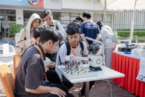 Học sinh có thể trải nghiệm đấu cờ với kỳ thủ robot tại sự kiện.