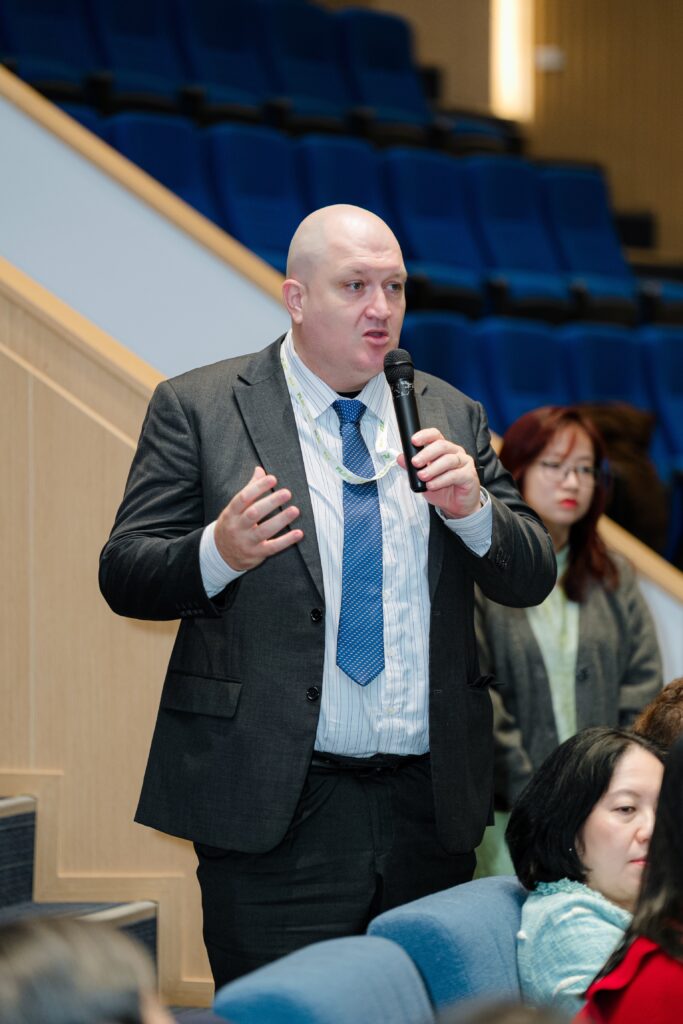 Người tham dự bày tỏ sự ấn tượng với nghiên cứu của PGS. Forbes và đặt câu hỏi về cách giảng viên có thể giúp hình thành bản sắc đa ngôn ngữ ở người học.