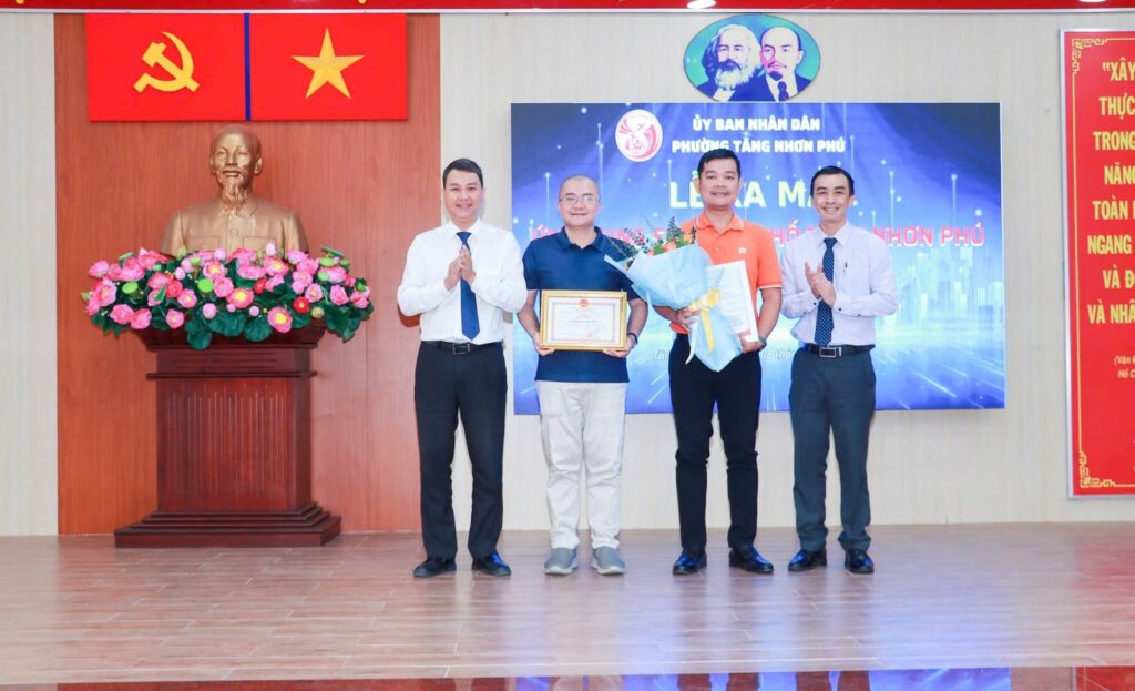 Tại sự kiện, lãnh đạo Trung tâm Chuyển đổi số TP.HCM và UBND phường đã trao thư cảm ơn cùng giấy khen cho tập thể, cá nhân từ phía Trường Đại học FPT vì những đóng góp nổi bật cho công tác chuyển đổi số tại địa phương.