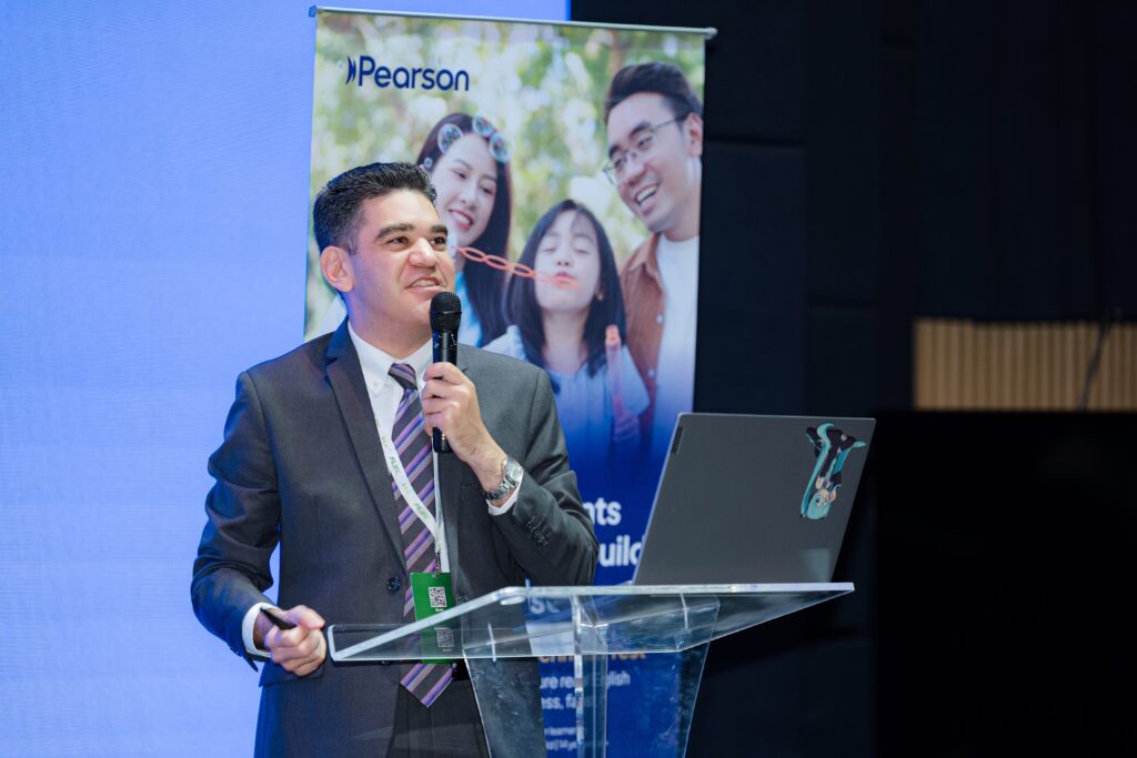 Tham gia với vai trò diễn giả khách mời, ông Brett Blumenthal, Cố vấn học thuật cao cấp của Pearson, chia sẻ về việc tích hợp năng lực nghề nghiệp (employability skills) vào giảng dạy tiếng Anh nhằm nâng cao mức độ sẵn sàng nghề nghiệp cho người học, đồng thời đưa ra những phương pháp đánh giá năng lực ngôn ngữ. Những phân tích này cho thấy giáo dục ngôn ngữ bền vững cần gắn chặt với nhu cầu của thị trường lao động, đồng thời giúp người học phát triển các kỹ năng cần thiết để thích ứng trong thế giới vận hành bởi trí tuệ nhân tạo.