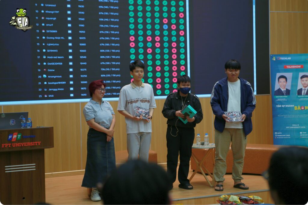 Ngày 22/02/2025 vừa qua, CLB An toàn Thông tin FIA Đại học FPT TP.HCM đã tổ chức thành công talkshow “Tầm Quan Trọng Của Dữ Liệu & An Ninh Mạng Với Doanh Nghiệp – Định Hướng Nghề Nghiệp Cybersecurity” tại Hall B, thu hút đông đảo sinh viên tham dự.
