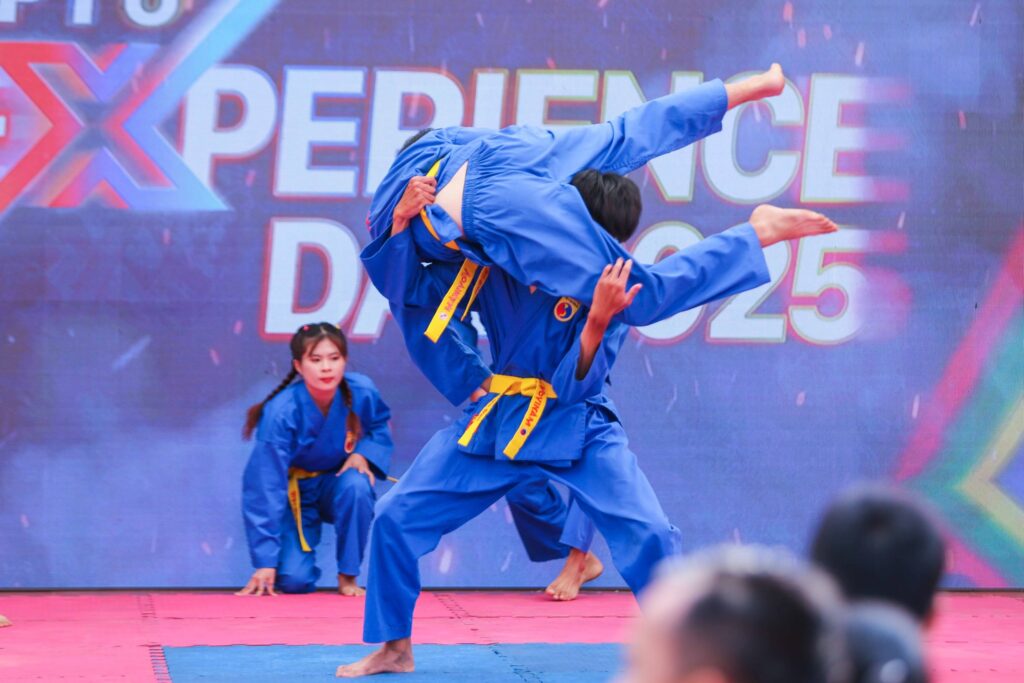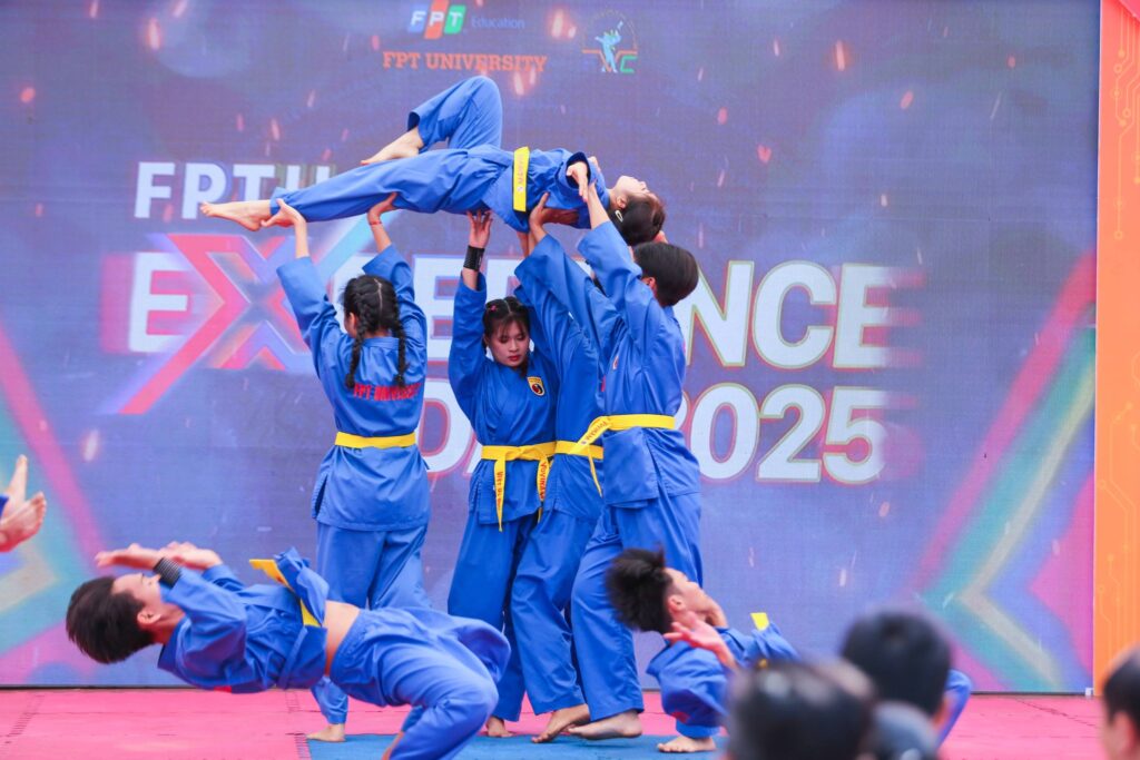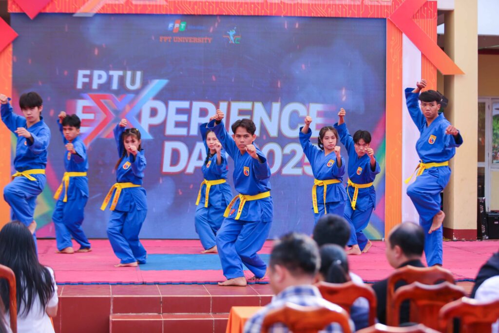 Trong khuôn khổ Experience Day 2025 tổ chức tại Trường THCS & THPT Đông Du (Đắk Lắk), đội Võ Nhạc FVC HCM tiếp tục mang đến một màn trình diễn ấn tượng, thắp lửa sân khấu bằng những bước quyền uyển chuyển, mạnh mẽ và đồng đều.