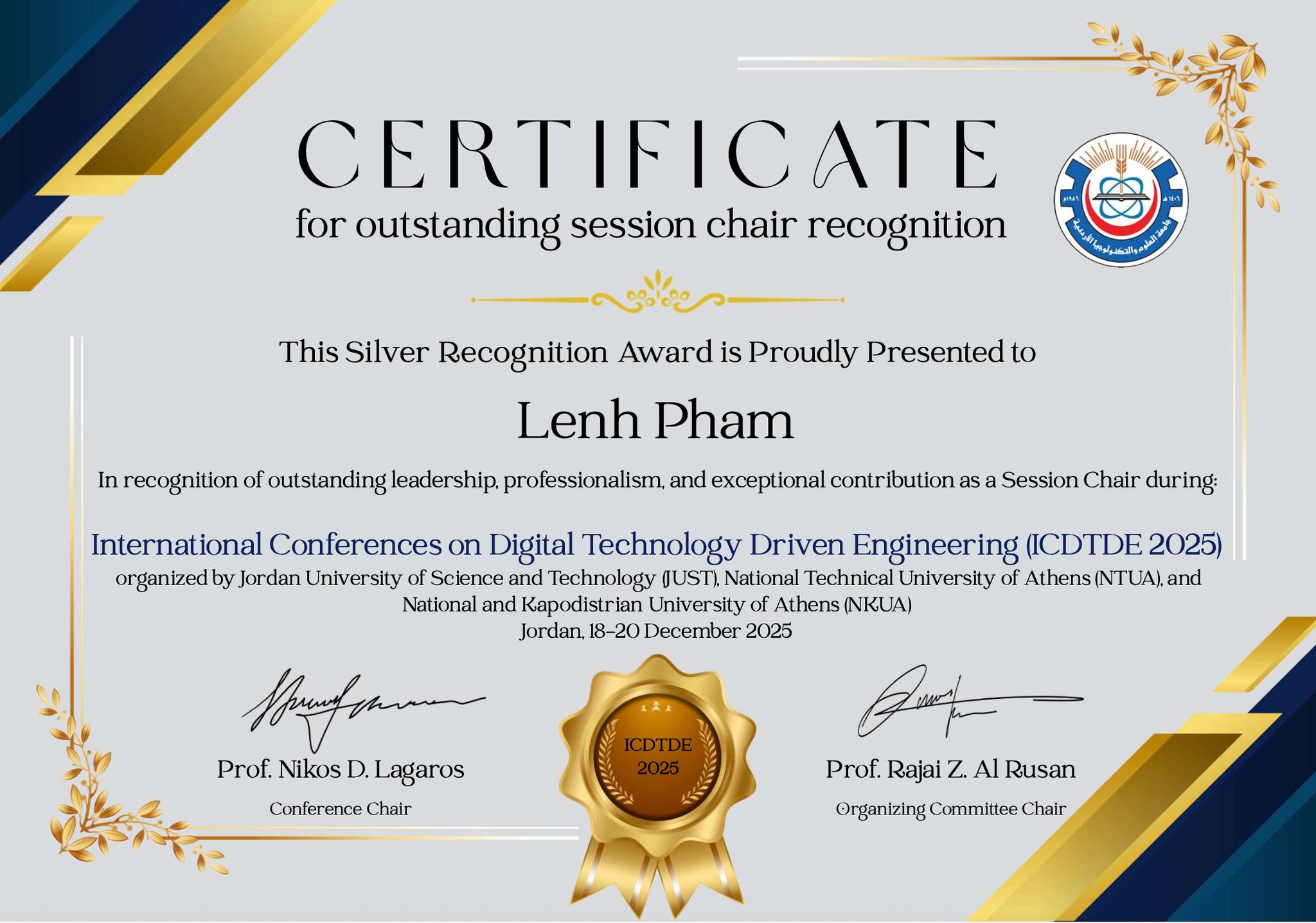 Vừa qua, Phạm Phan Công Lệnh – sinh viên K18 chuyên ngành Trí tuệ Nhân tạo Trường Đại học FPT – đã xuất sắc chinh phục giải thưởng Silver Recognition Award và đặc biệt đảm nhận vai trò Session Chair khi vẫn còn là sinh viên tại Hội thảo Quốc tế ICDTDE 2025 (International Conferences on Digital Technology Driven Engineering 2025).