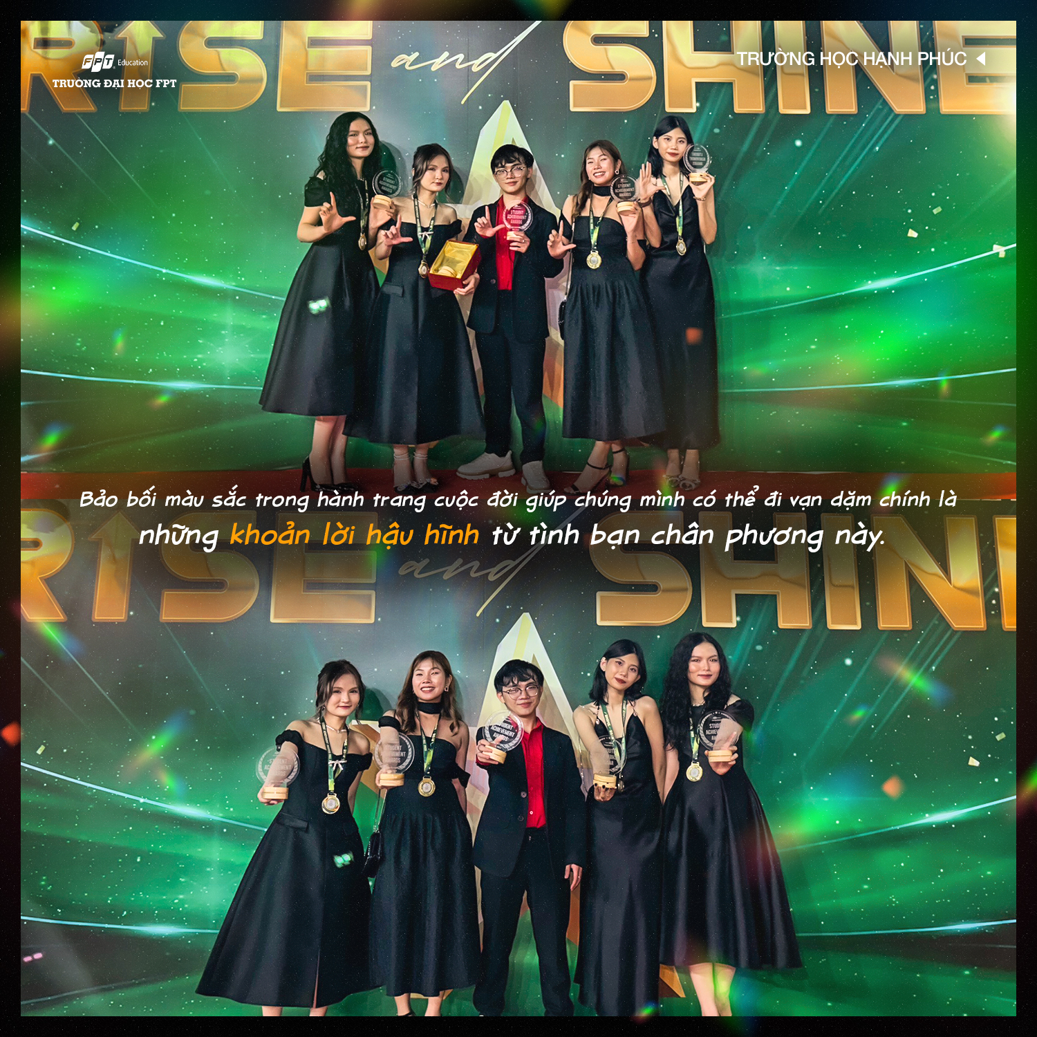 Kỳ OJT mỗi đứa một phương – Nhưng chung một khủng hoảng: Cái kỳ học mà mở ra cho tụi mình quá nhiều điều lạ lẫm. Không có gì ngoài những lần lắng nghe, sẻ san dặn nhau bước tiếp bước. Và hôm nay, ở đây, chúng mình tự hào đã cùng nhau chinh phục danh hiệu Sinh viên xuất sắc.