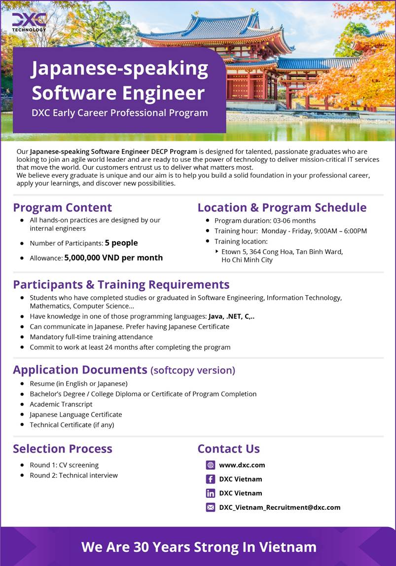 - Sẵn sàng cam kết làm việc tại DXC 24 tháng sau khi vượt qua chương trình DECP.