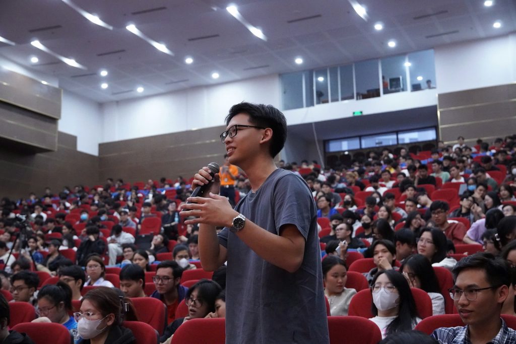 Đặc biệt, buổi hội thảo trở nên đặc biệt sôi động trong phần Q&A, khi các bạn sinh viên đặt câu hỏi trực tiếp cho diễn giả về cách nghiên cứu thị trường với nguồn lực hạn chế, cách xác định thị trường ngách tiềm năng và phương pháp tiếp cận khách hàng hiệu quả. Các chuyên gia đã đưa ra những lời khuyên thực tế, gợi ý các phương hướng và chiến lược tối ưu giúp startup áp dụng ngay vào thực tế.