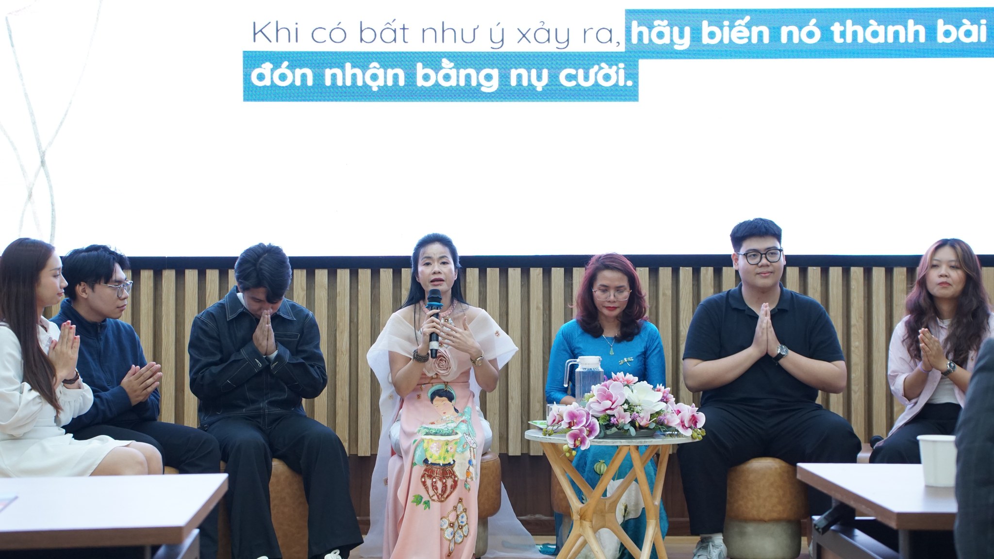 Sự kiện đã mang đến cho các bạn sinh viên lẫn khách mời nhiều trải nghiệm thú vị: lắng nghe những chia sẻ từ 2 diễn giả là Cô Hồ Thị Thanh Minh và Cô Võ Thị Minh Phương về các phương pháp chữa lành tinh thần và cách để có một nụ cười an yên,… Sau bài chia sẻ, các bạn sinh viên và khách mời còn có cơ hội được hướng dẫn cách để thực hành thiền cười, thở trong chánh niệm, tỉnh thức, đặc biệt cuối chương trình là khoảng thời gian lắng những âm thanh thanh lọc tâm trí, cơ thể qua tiếng chuông chữa lành, ẩm thực chữa lành…
